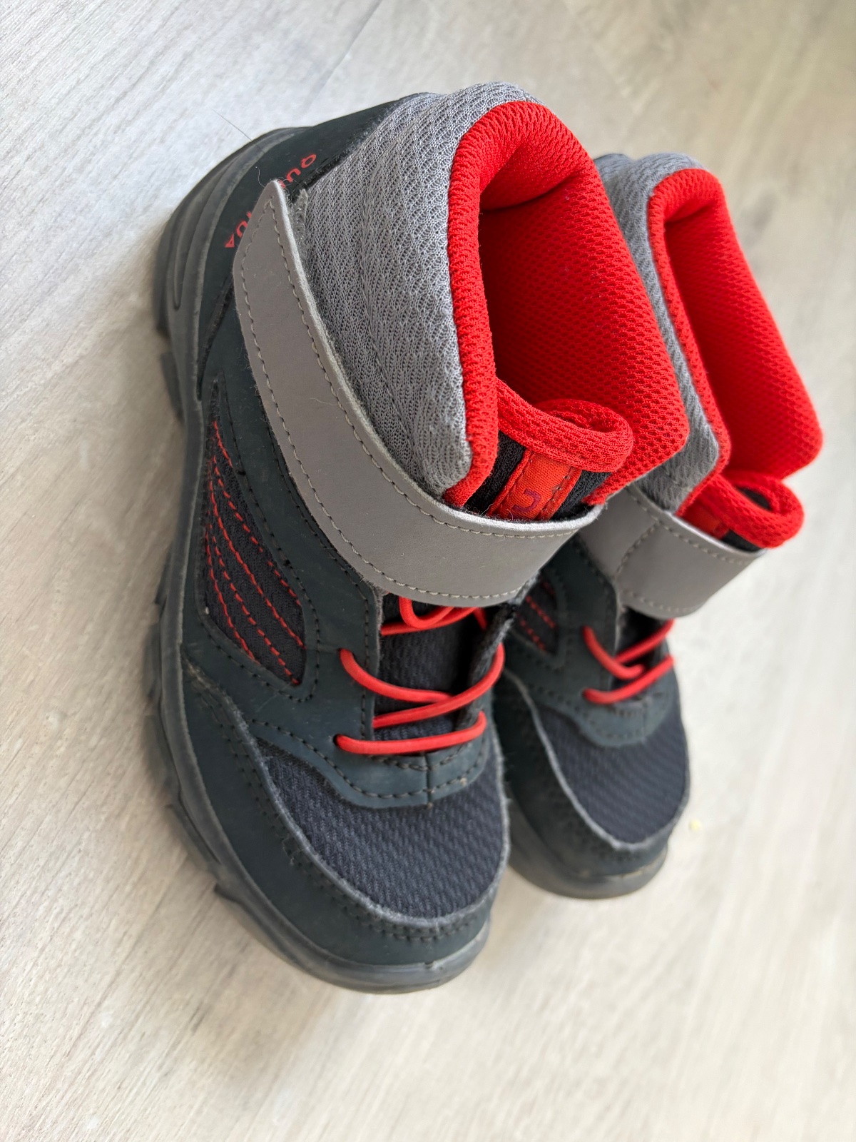 Predám 3x obuté turistické botky Quechua, veľ. 28, vn. dĺžka 17,5 cm. Super stav, trolinku blato na podrážke, nepodarilo sa mi úplne ich vyčistiť, inak bez poškodení. Cena 14,99 € plus poštovné.