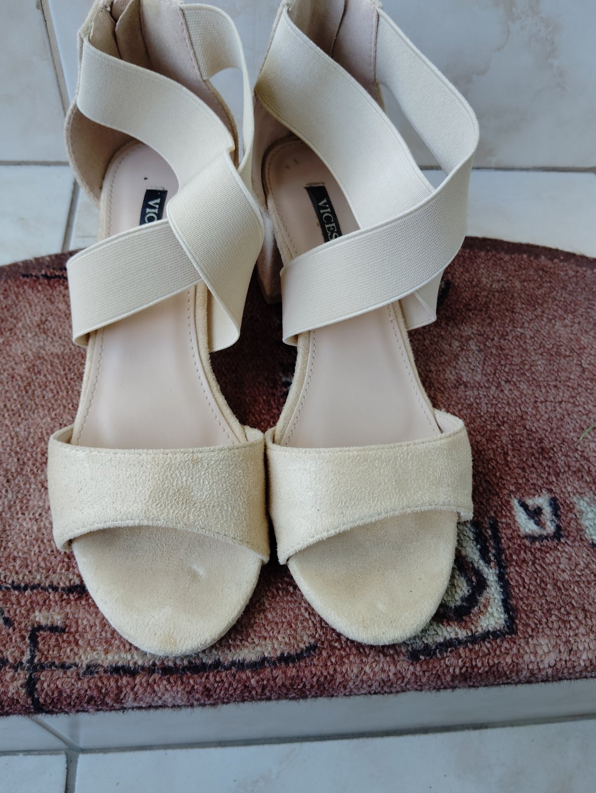 Krásne sandálky jeden krát obuté, krásne ukážu na nohe.Opätok 10,5cm, su vyššie ale pohodlné a dobre držia na nohe.Ako nové vôbec nezničene