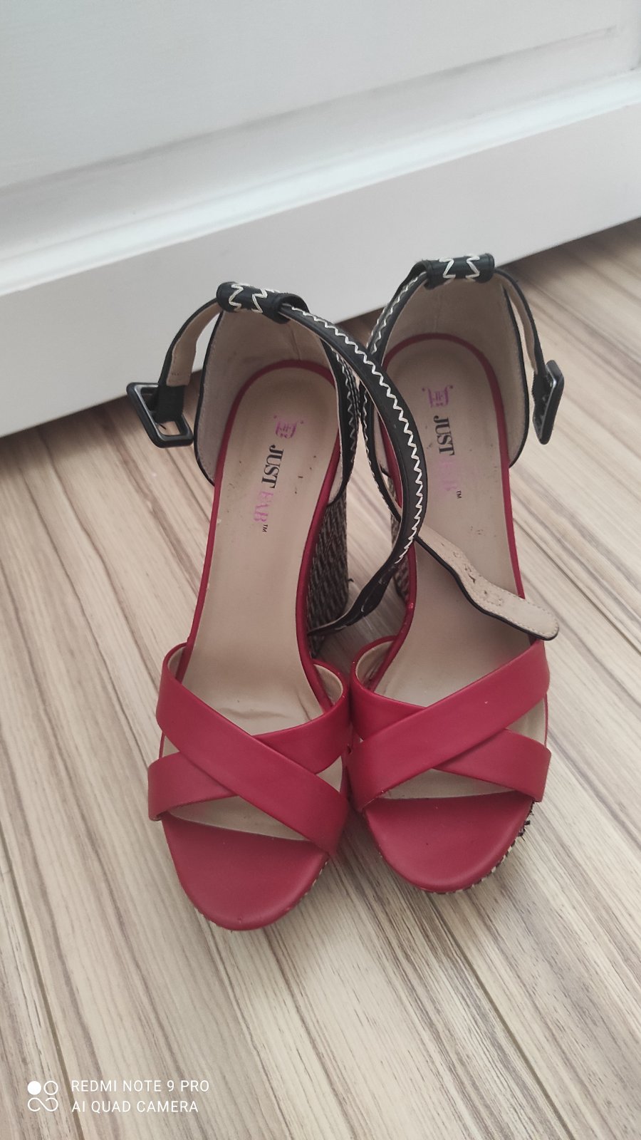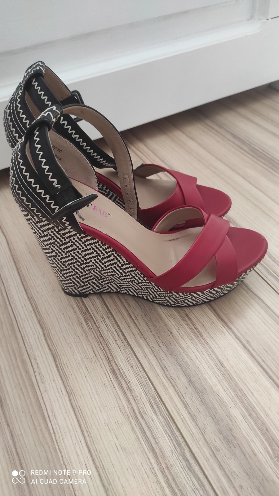 Veľmi pekné sandálky na plnom opätku s dominantným kvietkom. Sú kožené, veľmi mäkkučké a pohodlné. len mierne známky nosenia na opätku.