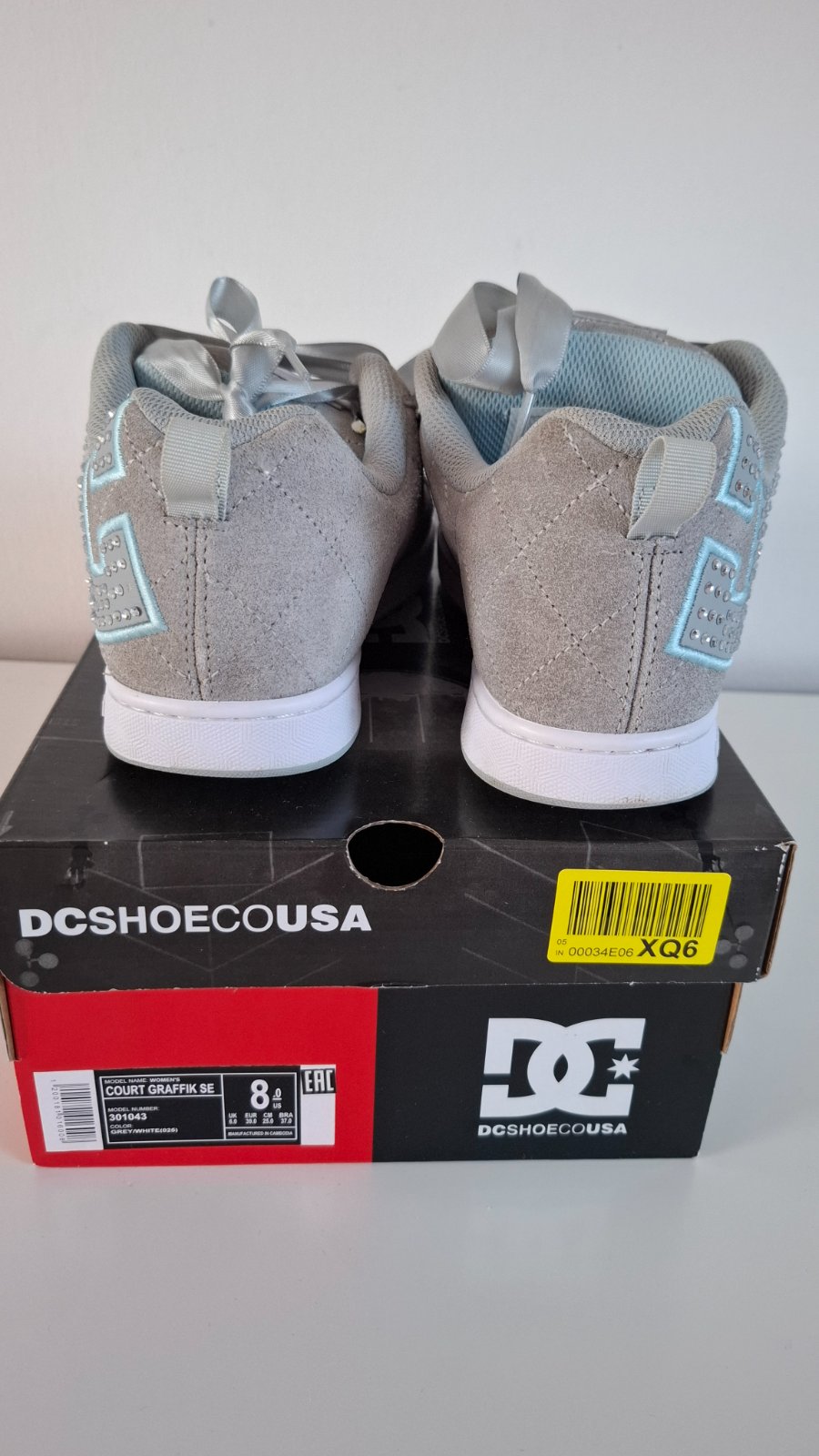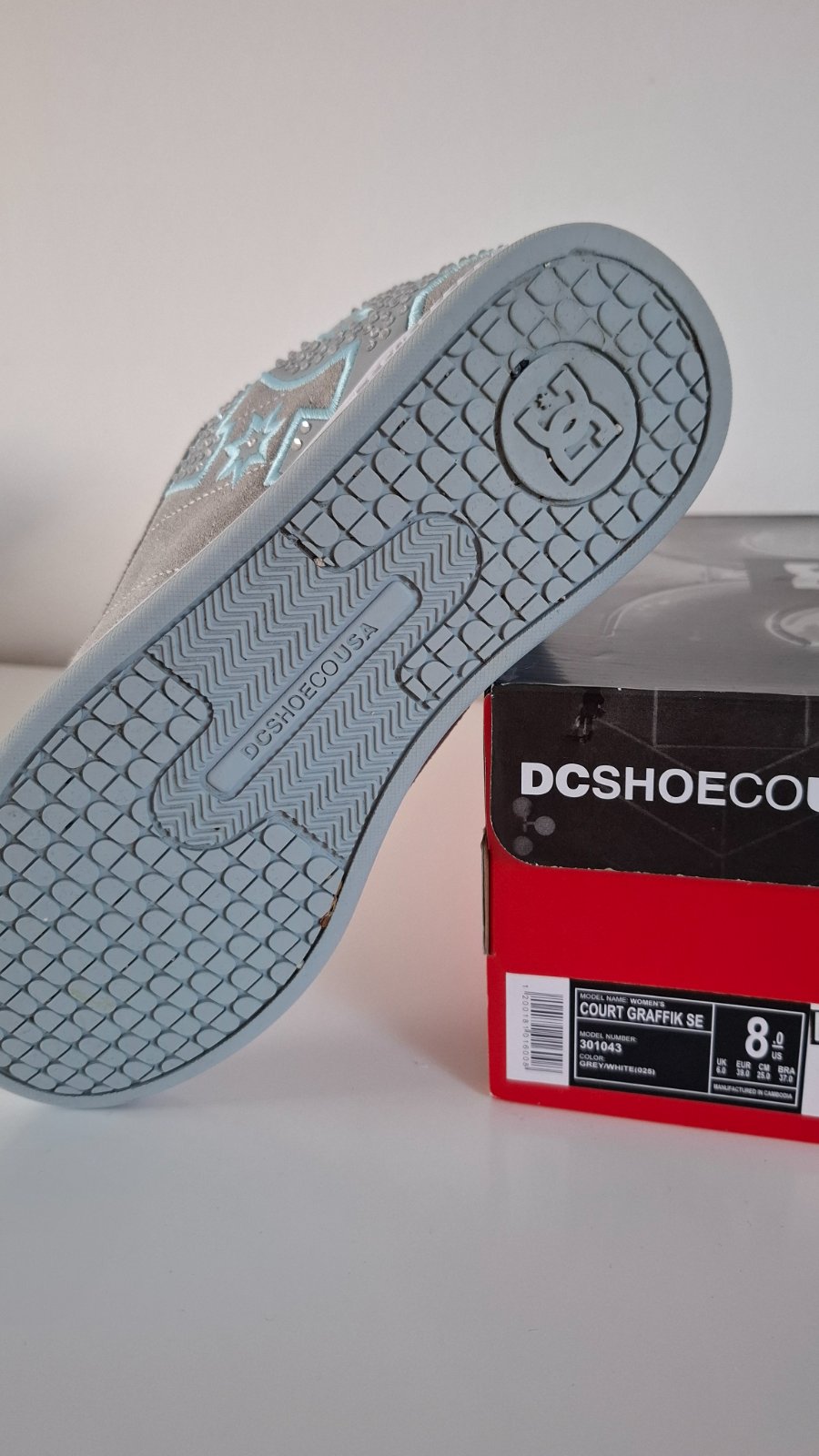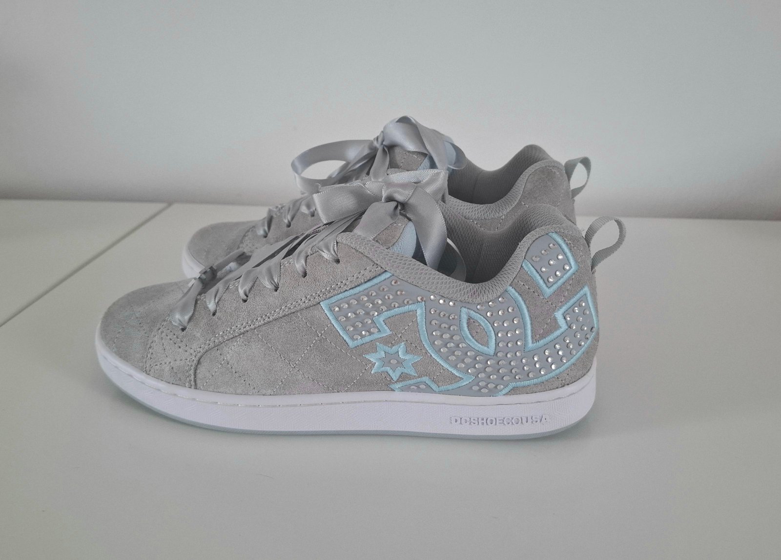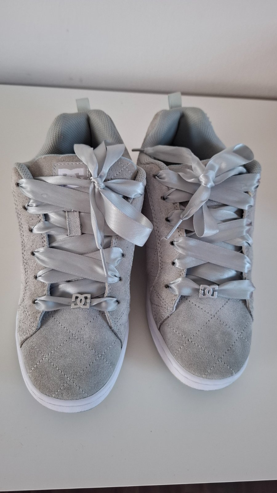 Krásne dievčenské / dámske tenisky DC. Nosené jednu sezónu. Stav ako nové. Uvedená veľkosť 38, no sú menšie. Vhodné na dĺžku chodidla cca. 23 max. 23,5 cm. Odporúčam.
