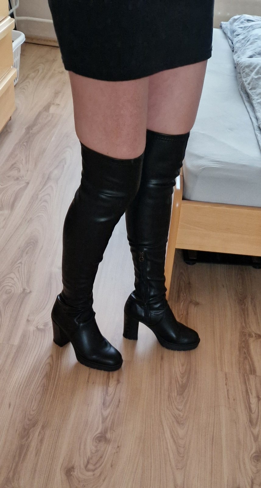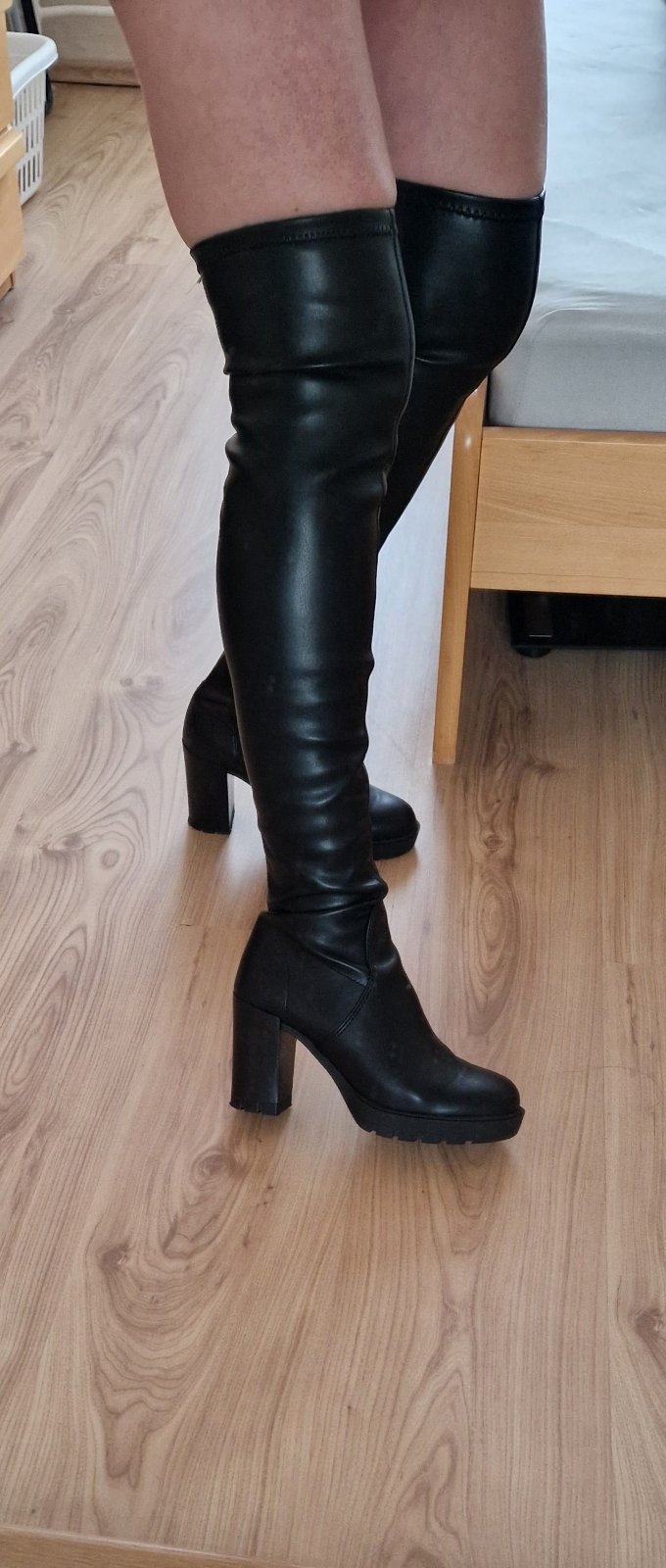 Predám čižmy nad kolená (s elastickou sárou), párkrát nosené, vo veľmi dobrom stave, veľmi pohodlné, mierne zateplené, na úzku nohu... pri vážnom záujme pošlem viac foto aj info... cena s poštou...