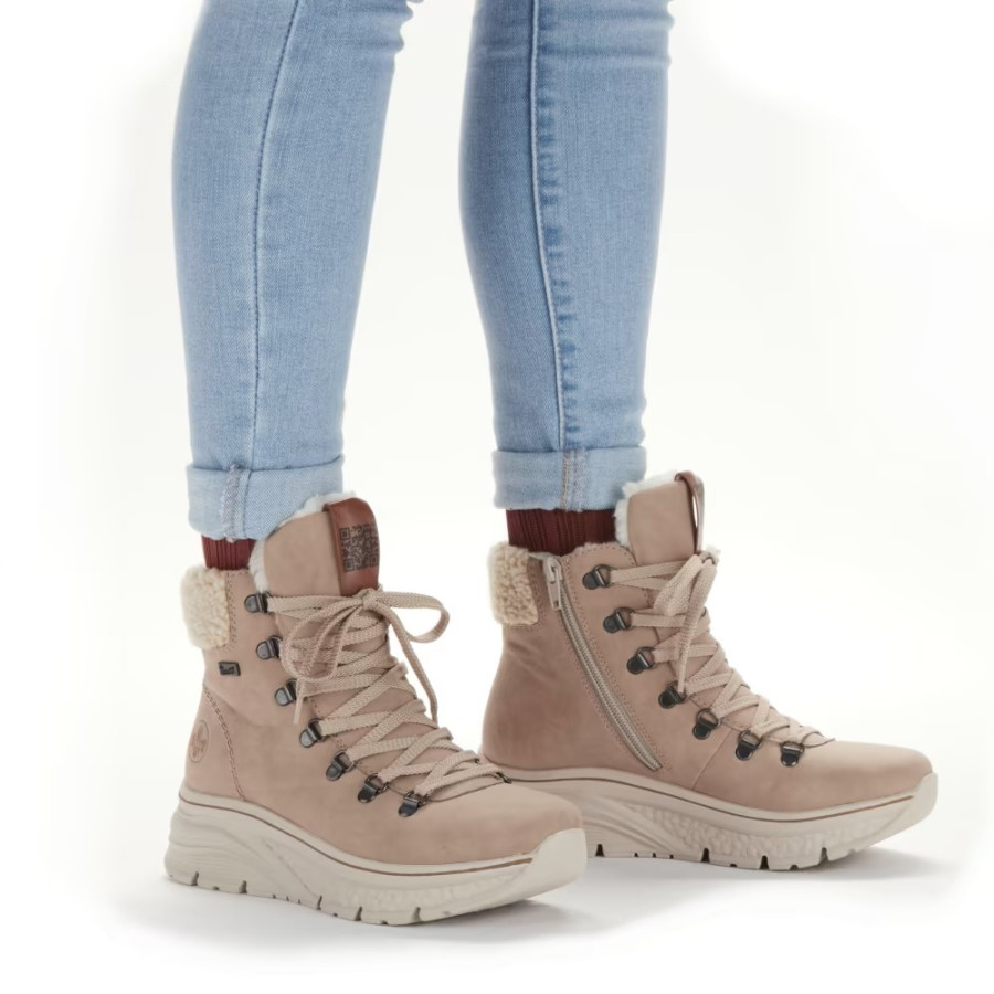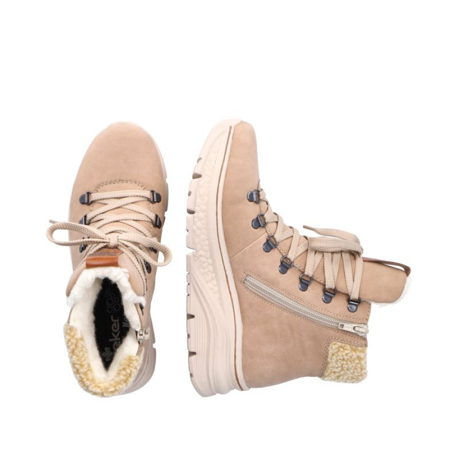 Dámska vychádzková členková obuv z vnútornej strany na zips a šnurovaním. Vrchný materiál je syntetika. Vnútro obuvi je textilné, vrátane vystlanej nášľapnej stielky so SoftFoam penou. Farba u tohto vzoru je béžová. Podrážka je flexibilná syntetická. Jej výška je cca 2 cm. Výška podpätku je cca 4,4 cm. Obuv má riekerTEX membránu. Vezmite si ich kdekoľvek do prírody alebo aj na prechádzku mestom- vaše nohy sa Vám poďakujú.