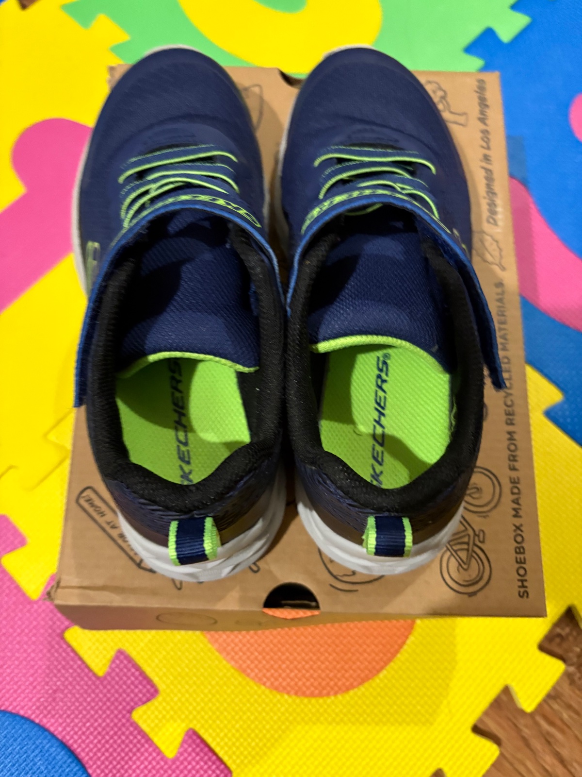 Detská obuv značky Skechers. Botasky Flex glow v tmavomodrom prevedení s červenými detailami potešia všetky deti svetelnými efektmi. Zvršok je vďaka sieťovine priedušný. Šnúrky dopĺňa popruh na suc...