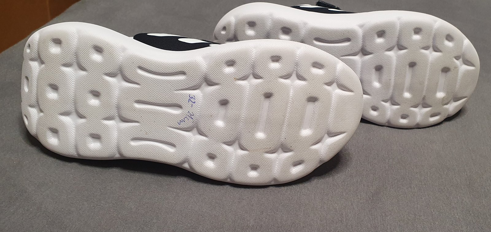 Takmer nenosené, vnútorná dĺžka meraná meradlom je 21mm, čiže vhodné na nôžku cca 20/20,5 mm., su ľahké, veľmi pohodlné, my sme zle odhadli veľkosť, kupovali sme väčšie, preto ich posúvame, nosené možno 10x, viď foto, cena je bez posty