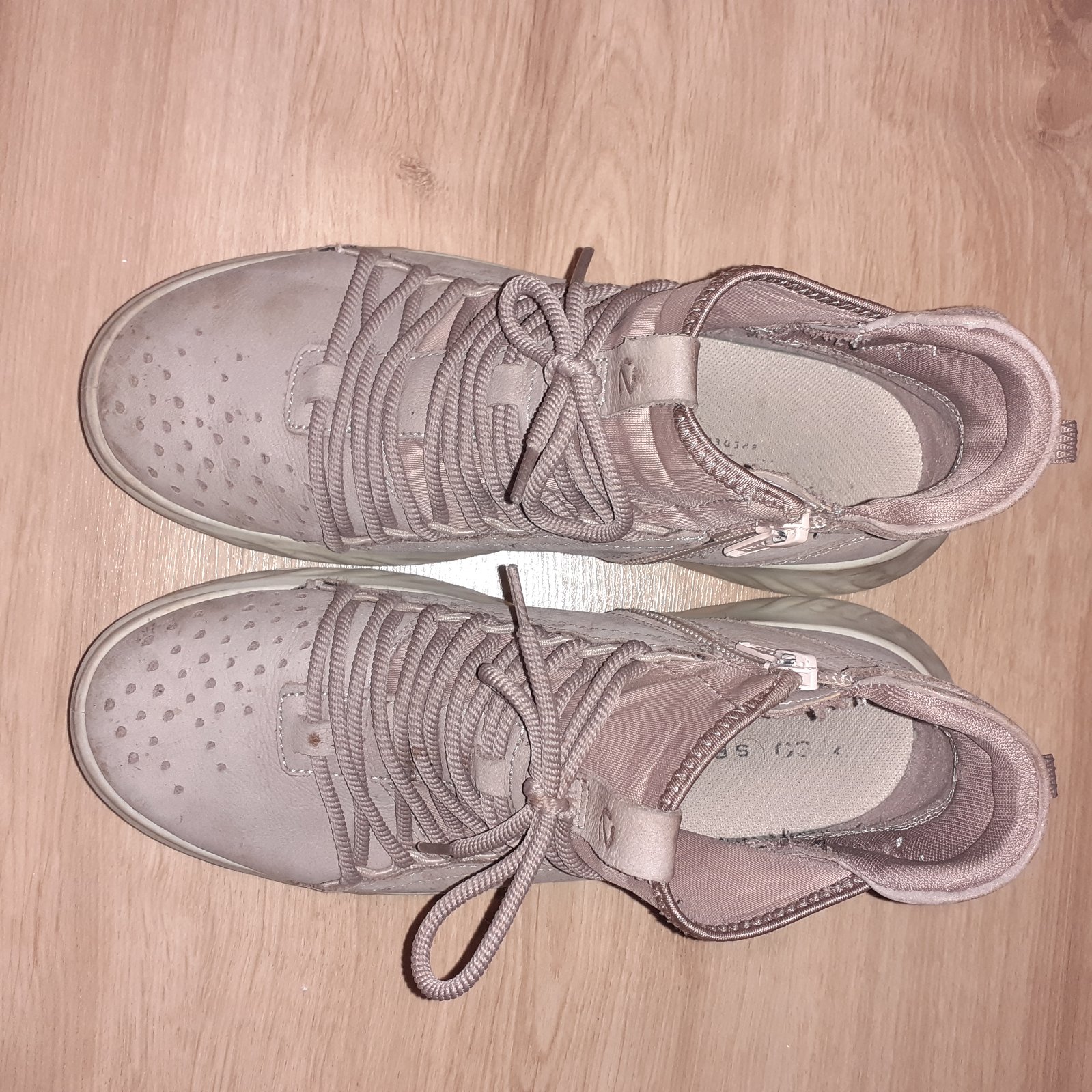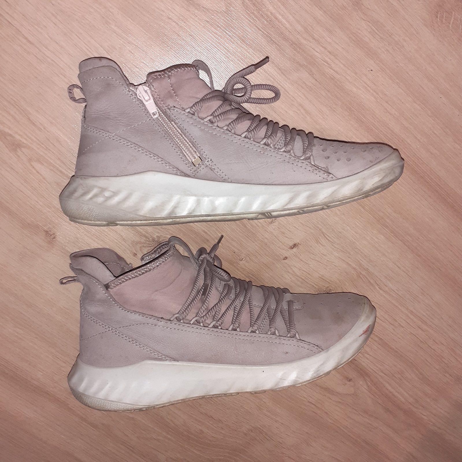 Nosené, nepoškodené, veľmi pohodlné. Farba je taká skôr staro ružová.