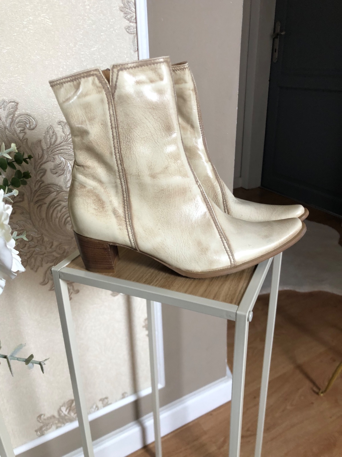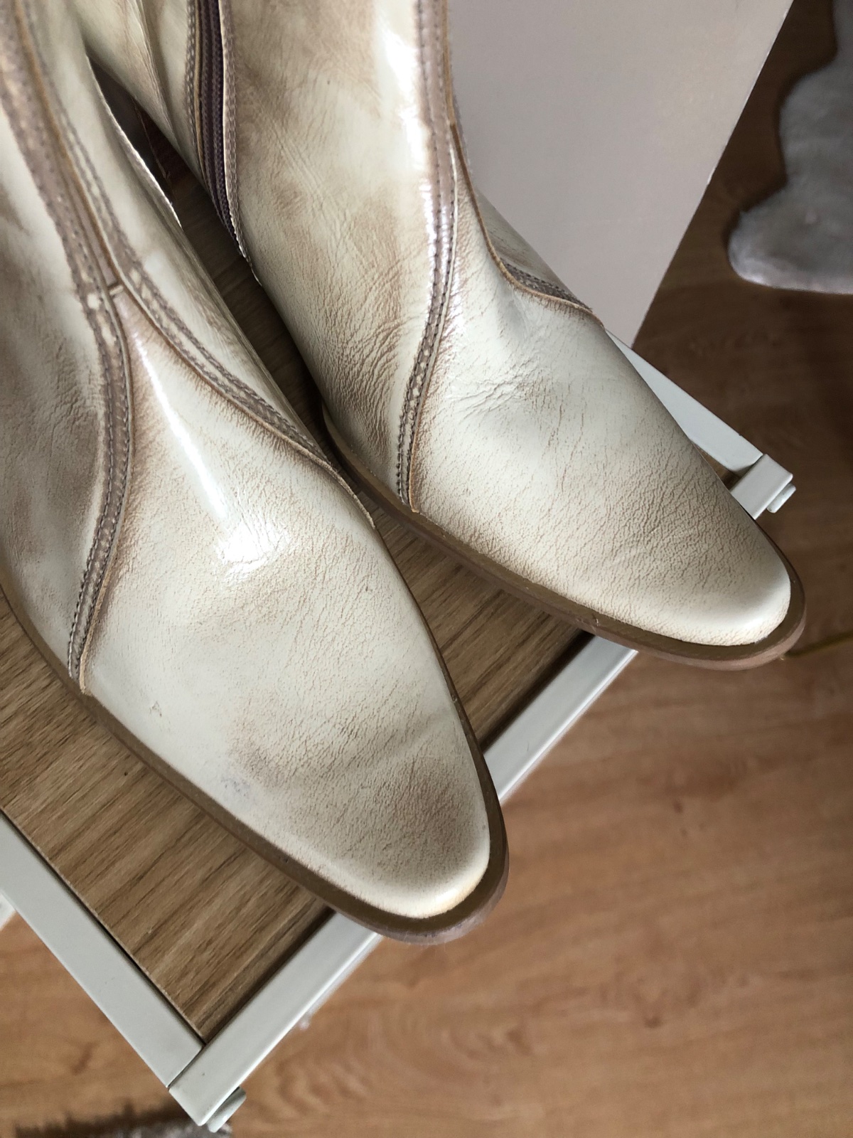 Luxusné kožené kozačky, vnútorný zips, batikovaná koža, nové s náhradnými opatkami.