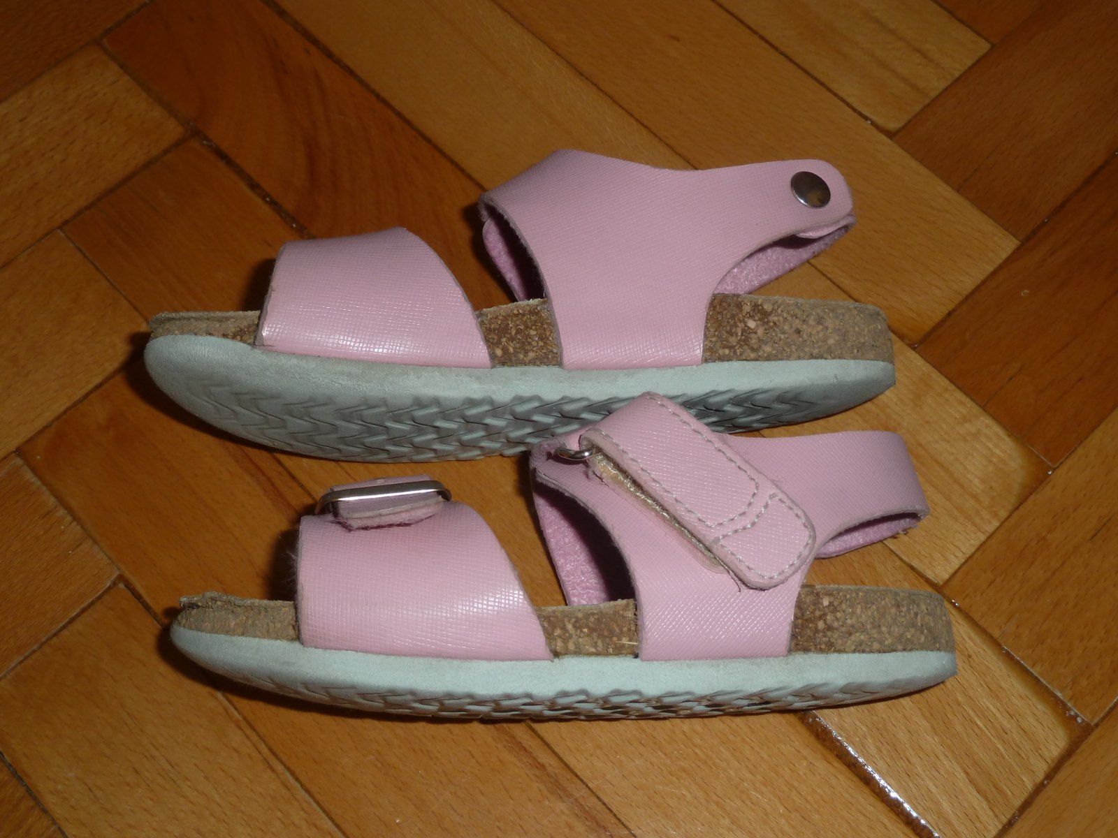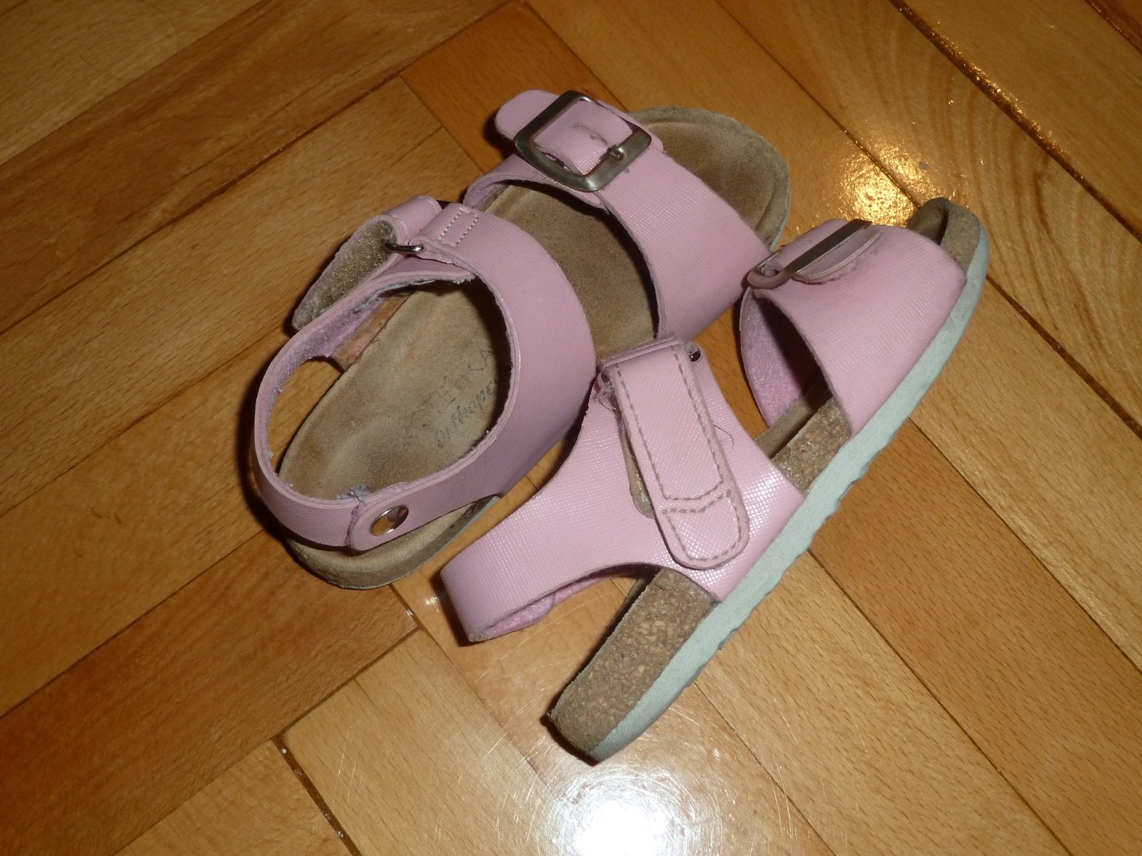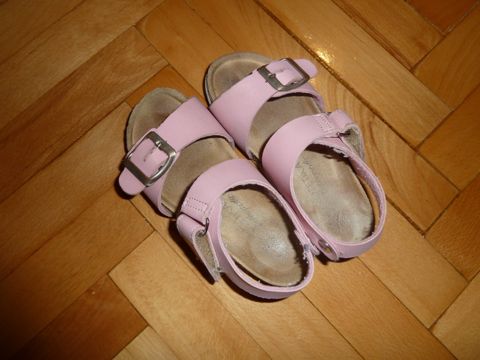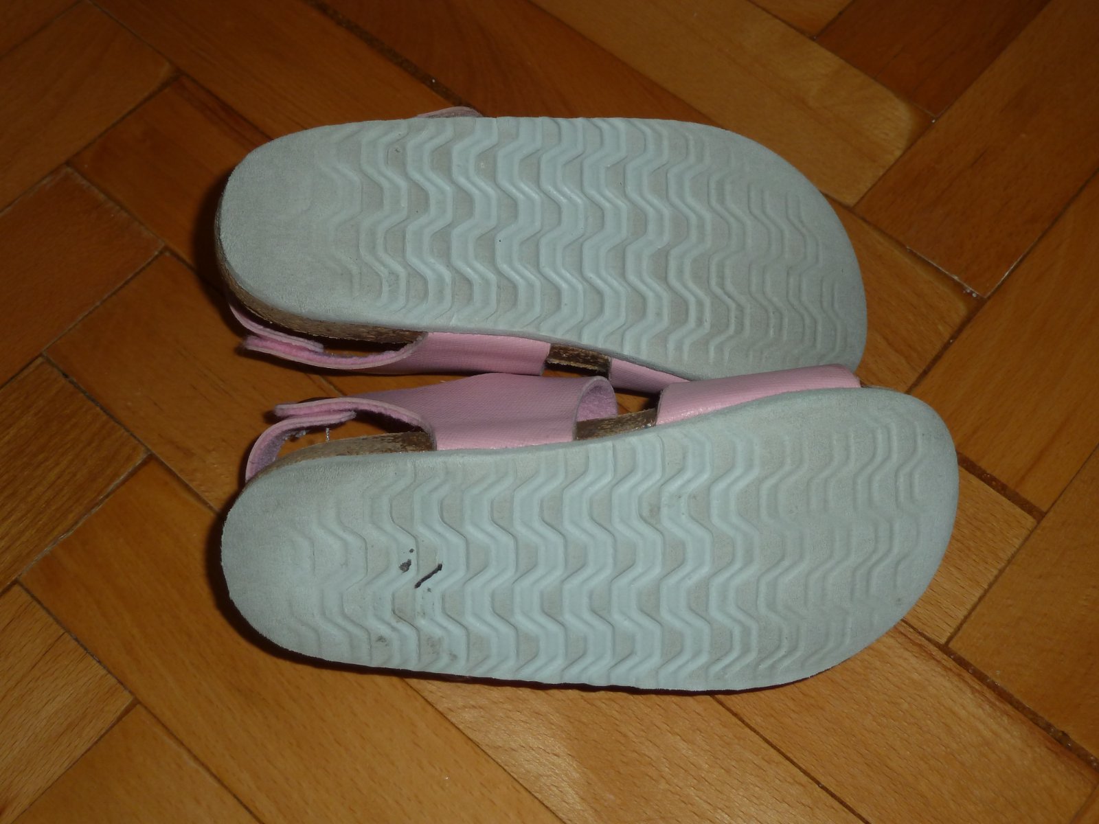 Papucky alebo sandalky v peknom nosenom stave, nosene par mesiacov v skole ako prezuvky, boli kupovane nove. Vnutorna dlzka: 16,7 cm