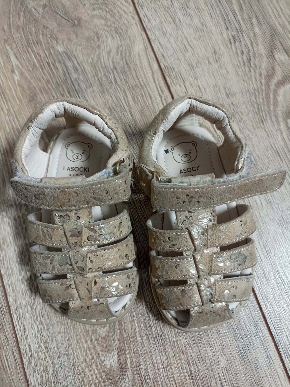 Pevné dievčenské kožené sandálky Lasocki veľkosť 20, vpredu trochu ošúchané inak vo veľmi dobrom stave.