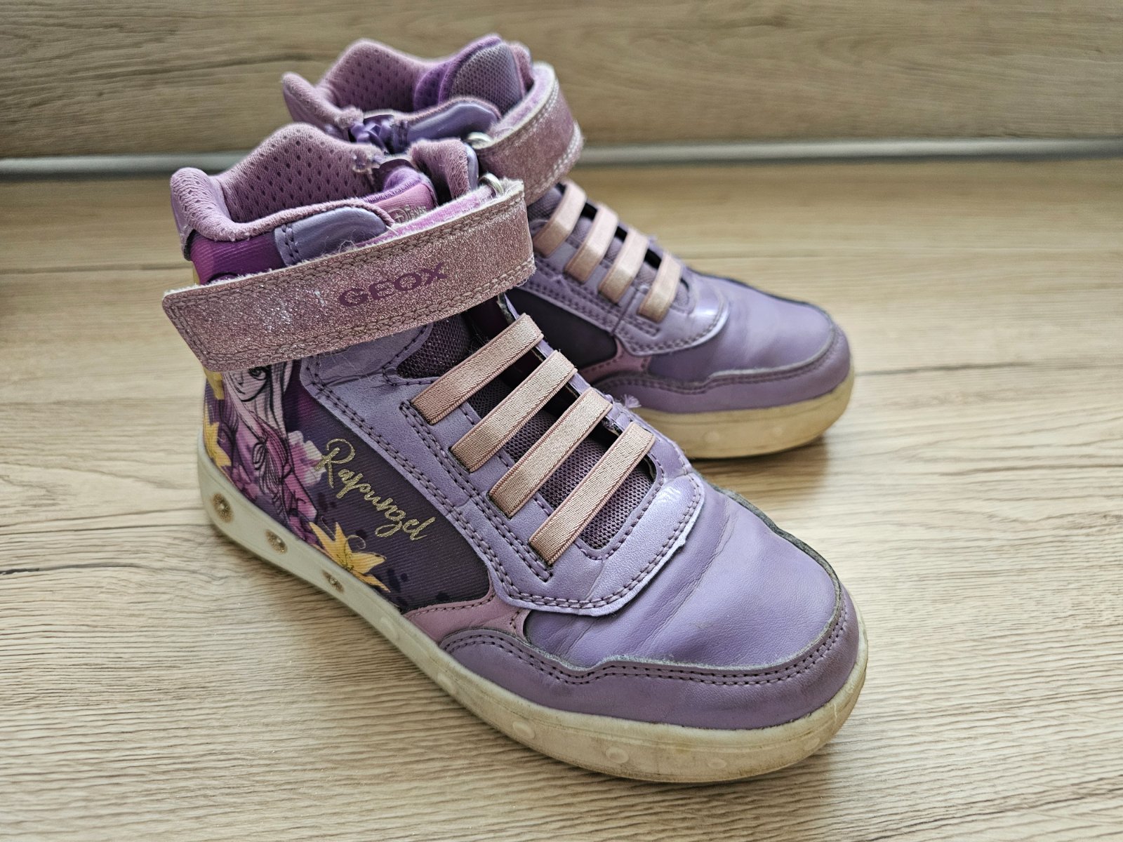 Blikajúce tenisky Geox s bežnými známkami nosenia, bez poškodení.
