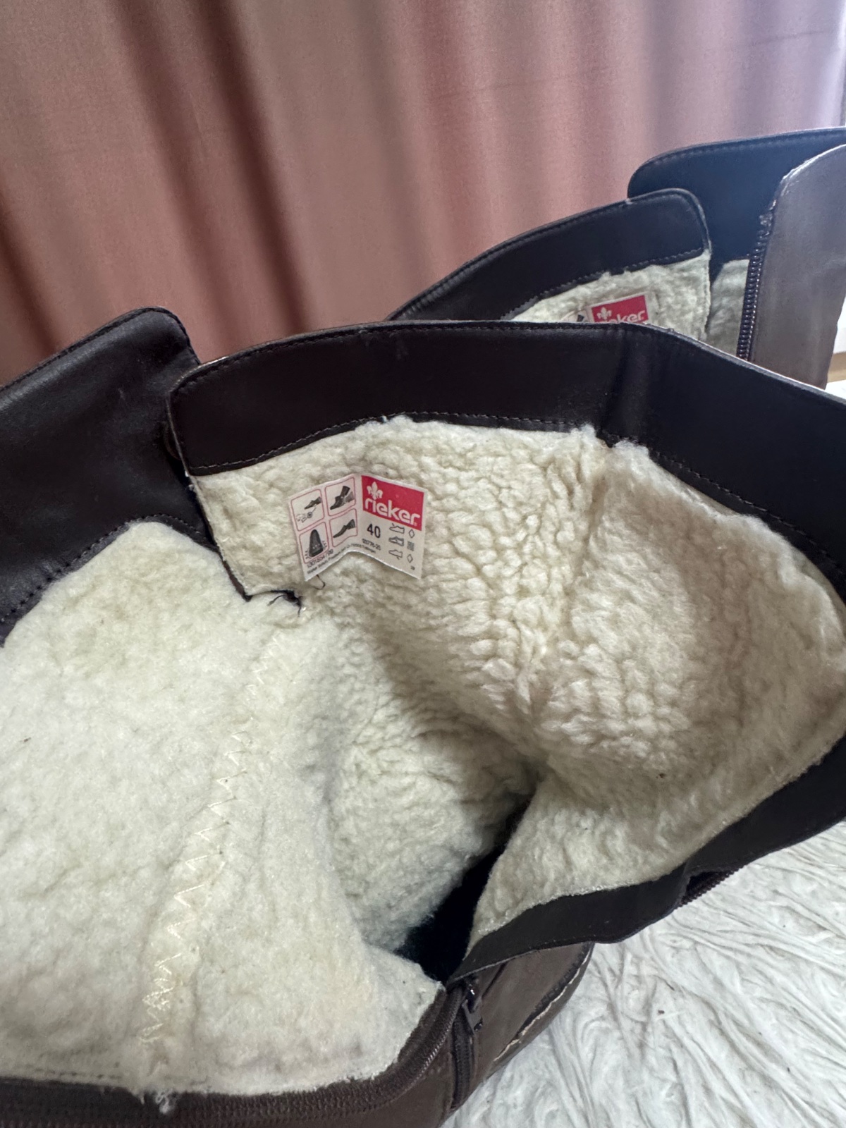 Málo nosené teplé hnedé čižmy Rieker, veľkosť 40. Minimálne poskodenia, viď. foto