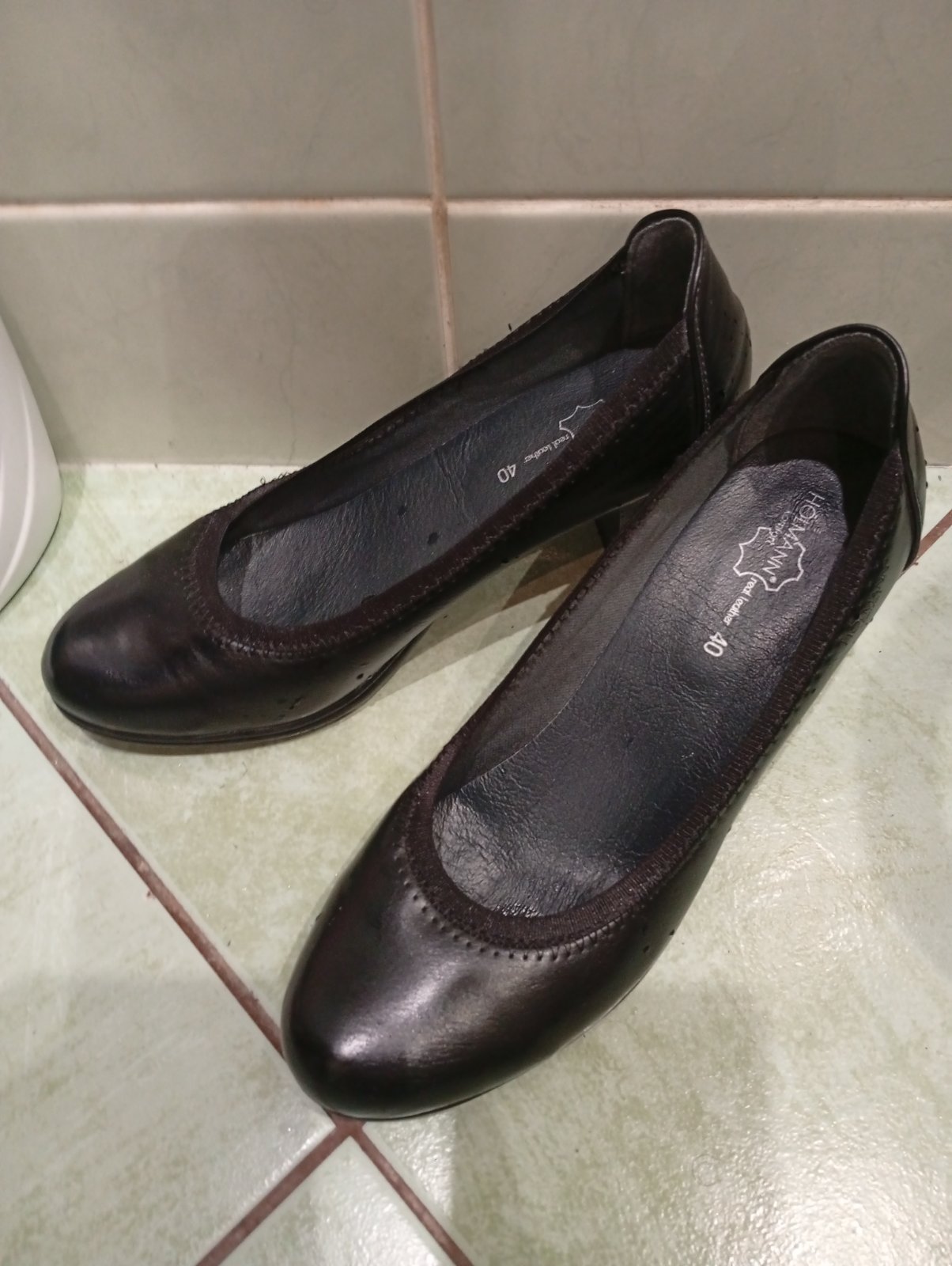 Predám čierne kožené pohodlné lodičky č.40 s primeraným opätkom,vnut. dĺžka mqx 26 cm.Ľahke nasúvanie,vhodne pre širší nárt.Mne veľké.Nepoškodene!