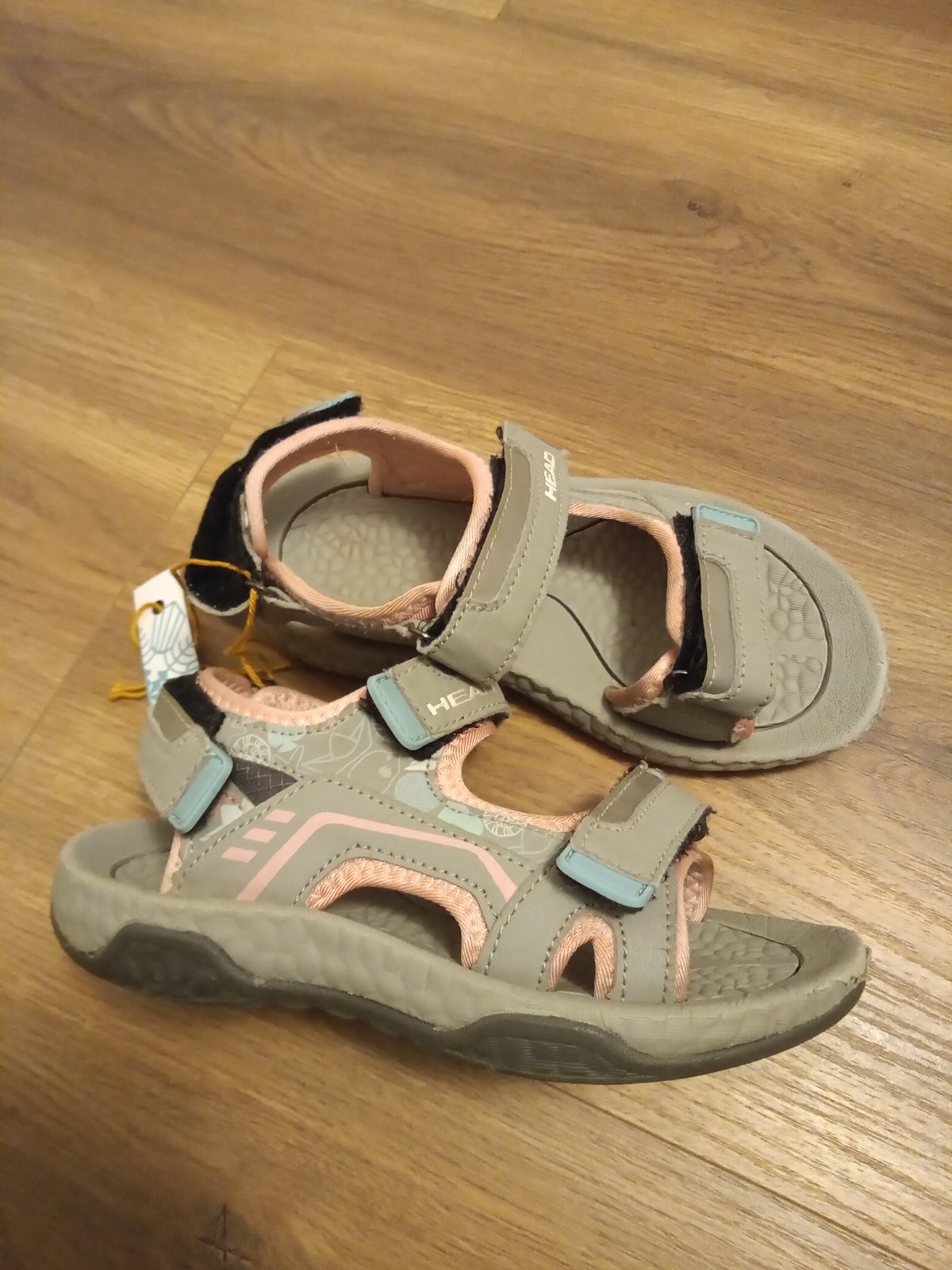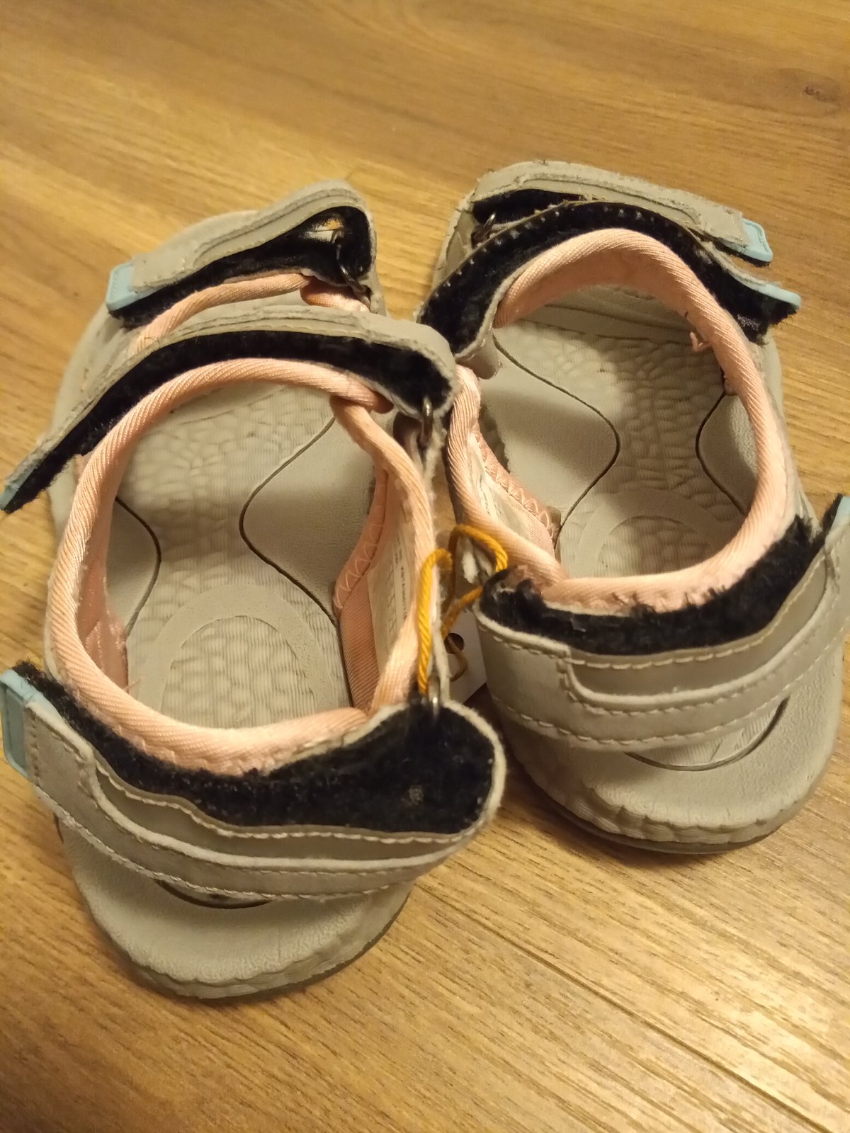 Sandalky v. 29. Nosene jednu sezonu. Na spickach jemne suchnute spicky, moc to nevidno, je v tej istej farbe. Vnutorna dlzka 20cm. Podla mna vhodne aj do skoly.