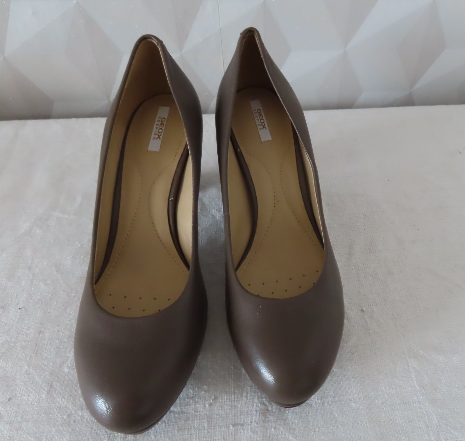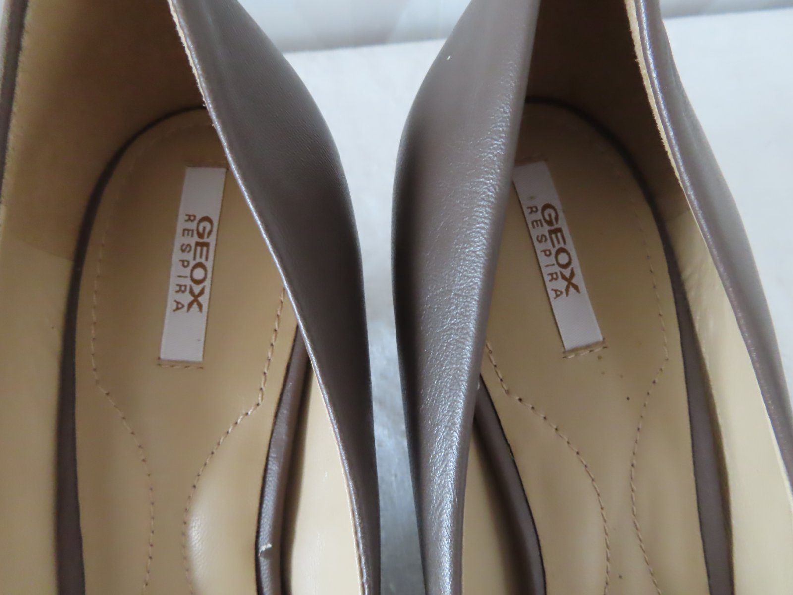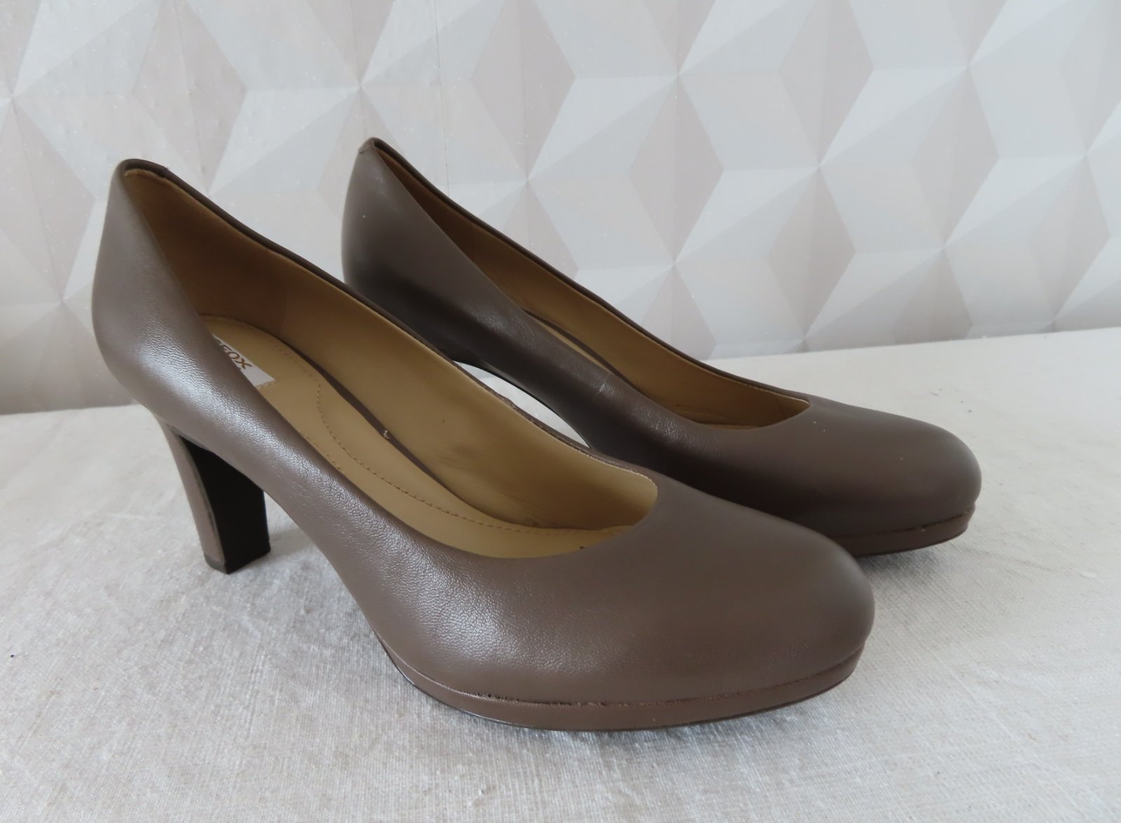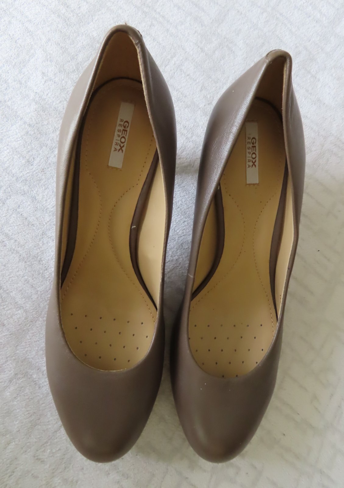 Kožené lodičky na platforme, Geox Respira, farba taupe, hnedo-šedá.