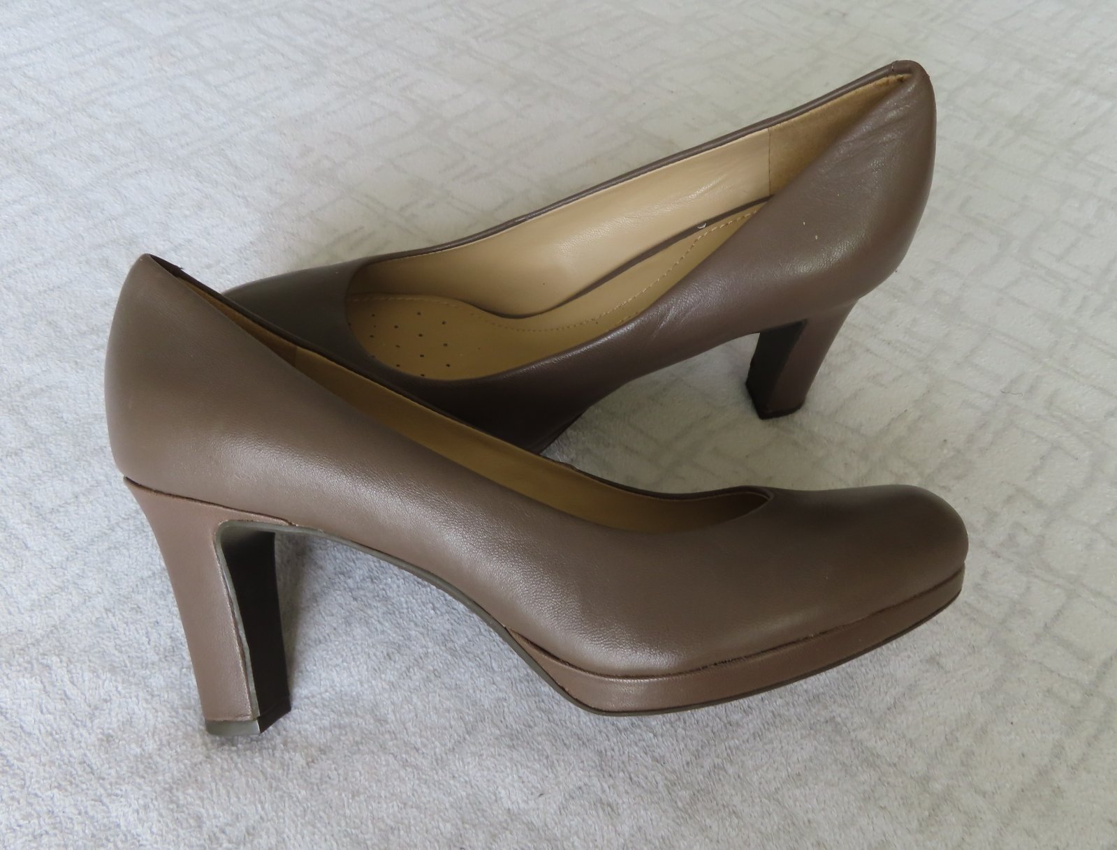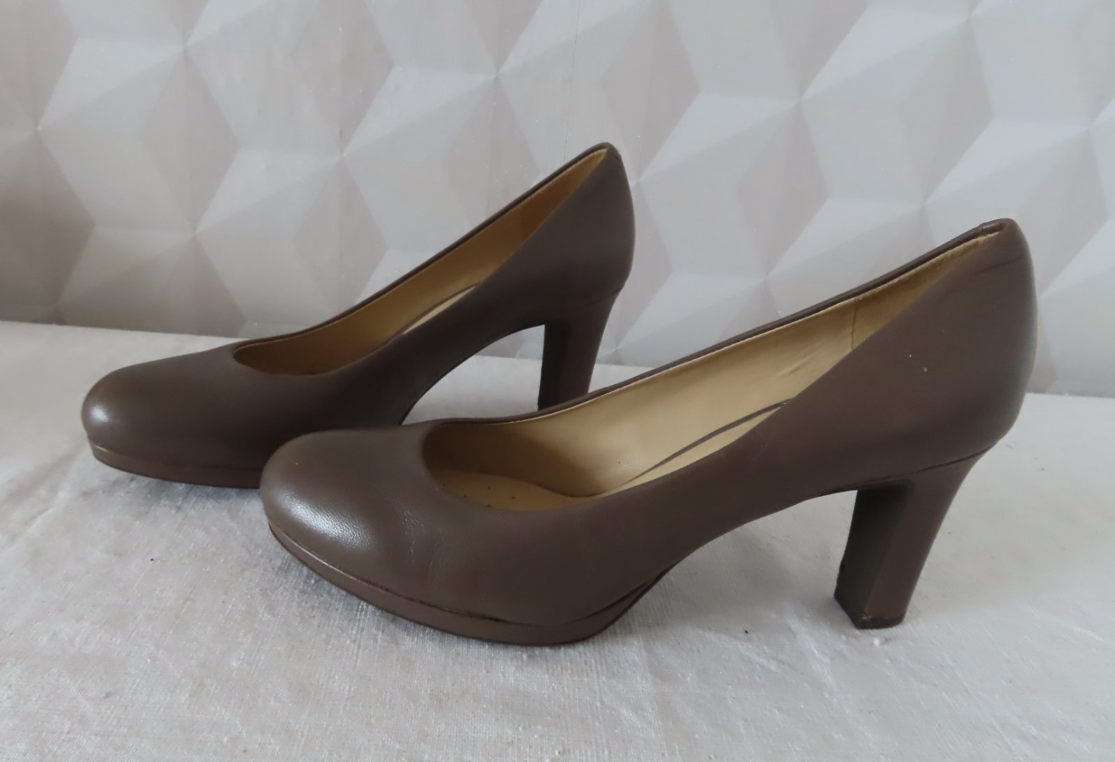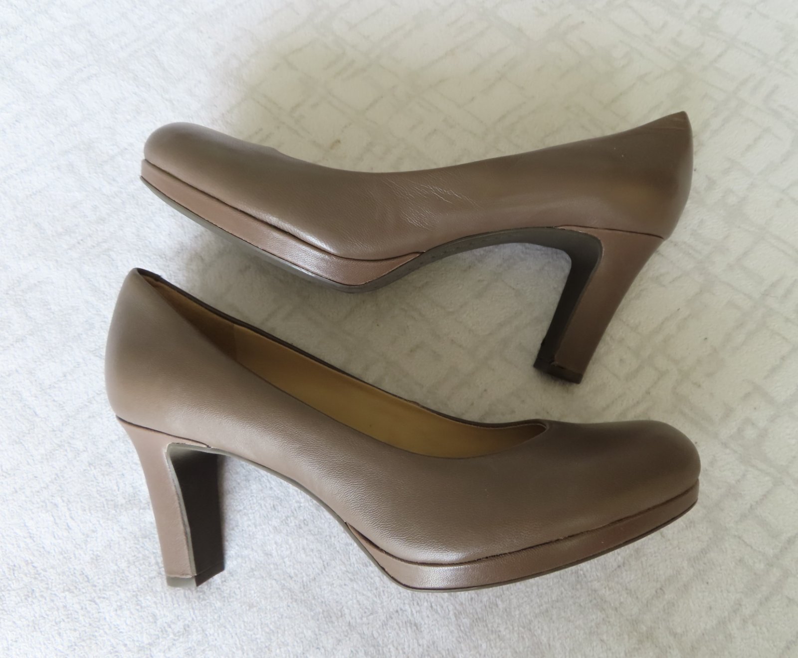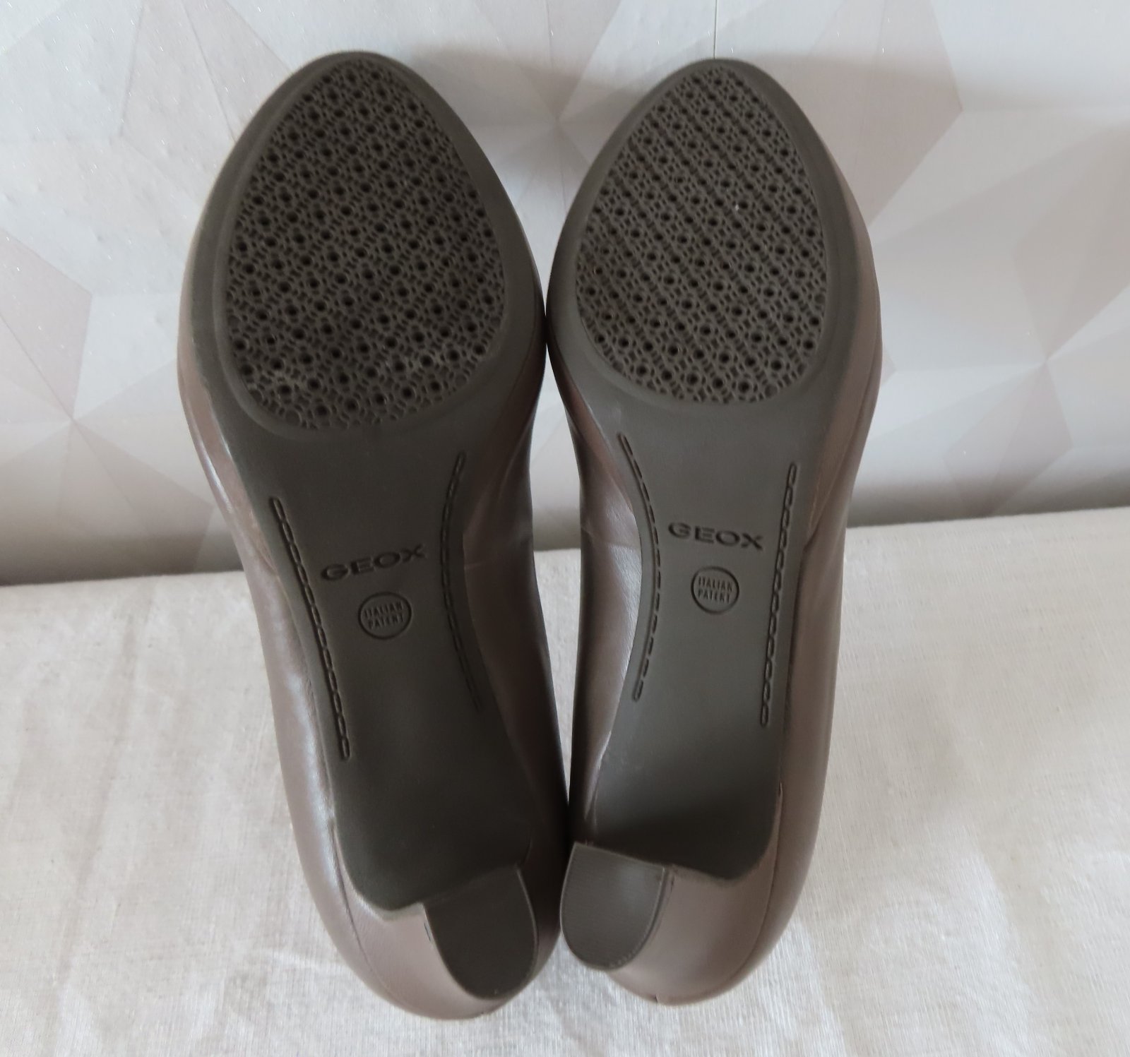 Kožené lodičky na platforme, Geox Respira, farba taupe, hnedo-šedá.