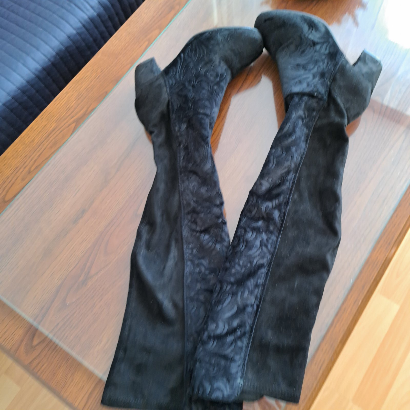 V top stave, nepoškodené 2x použité v interiéri.Čižmy majú pekný vzor ktorý dodáva čižmám šmrnc a eleganciu.Dôvod predaja nevyužijem.