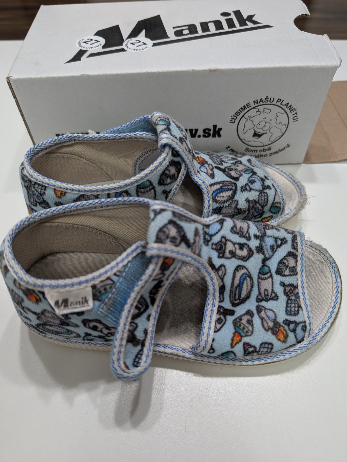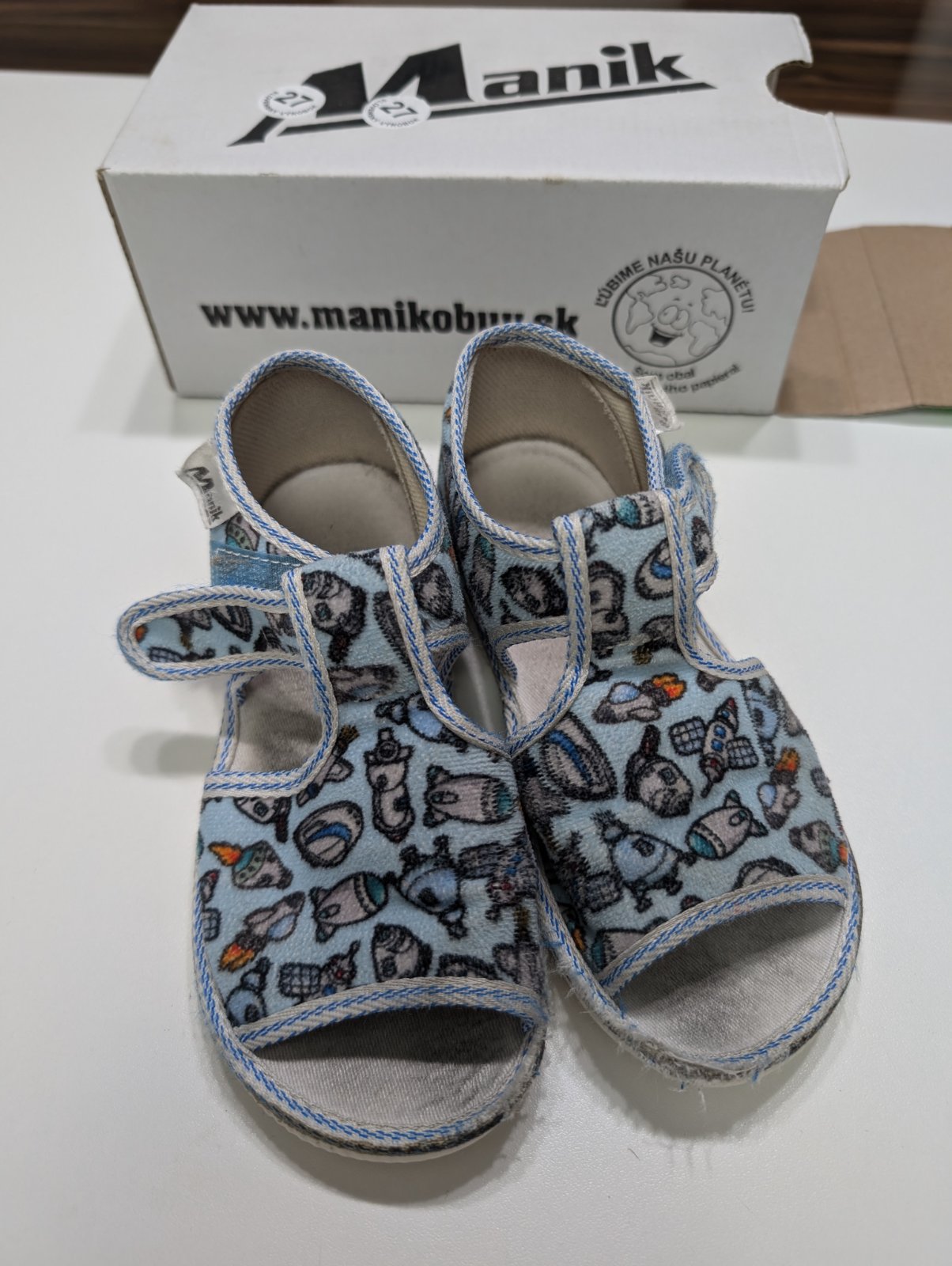Papučky značky Manik vo veľkosti 27, jedny nosené v školke a druhé na doma.V dobrom nosenom stave. Cena 6€ za kus.