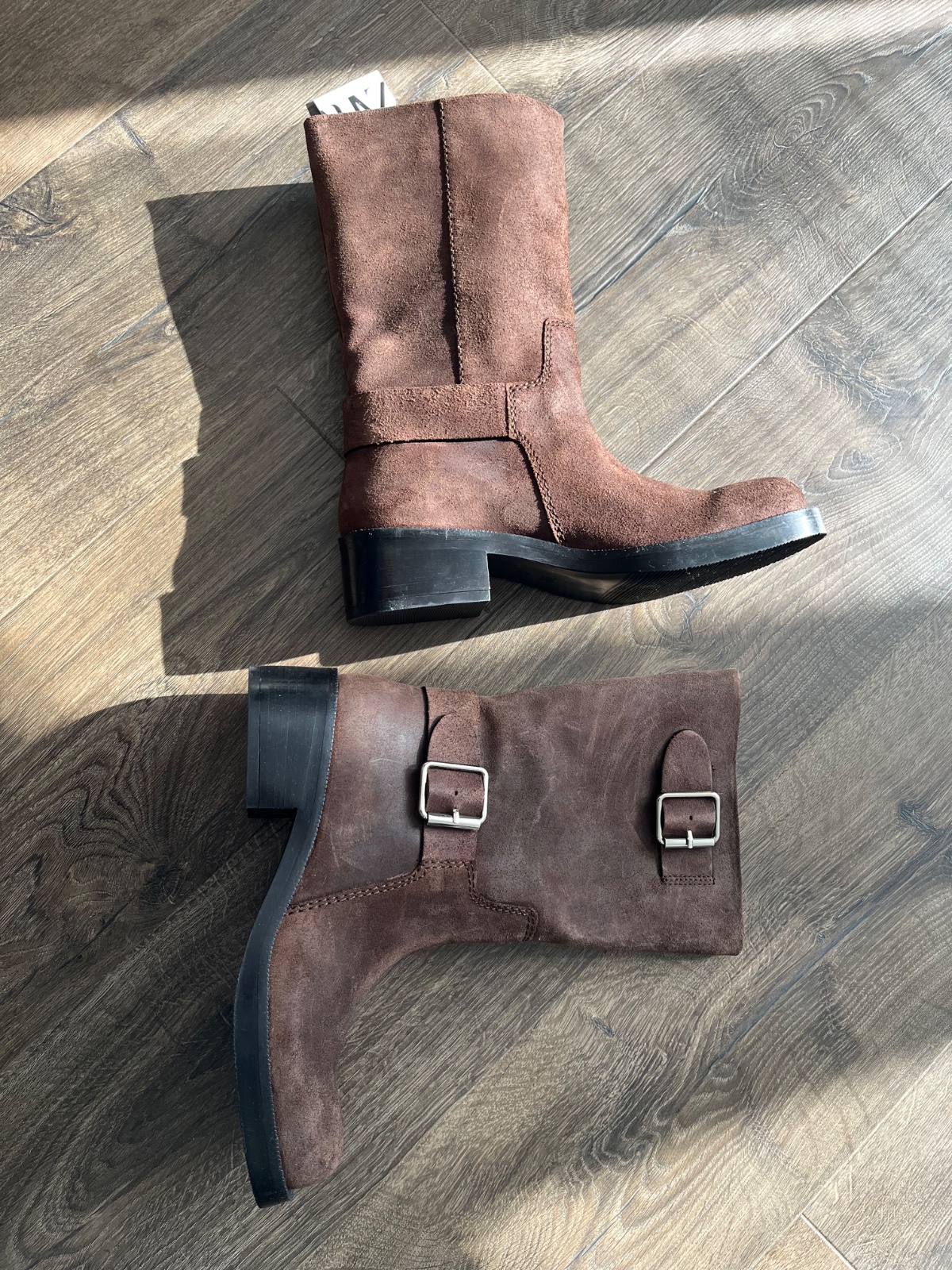 Nove nenosene cizmy -brusena koza,veľkosť 38 a sedi,nezateplene