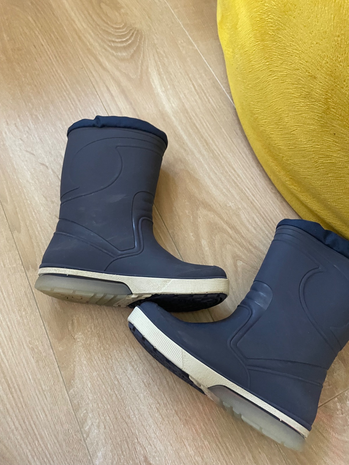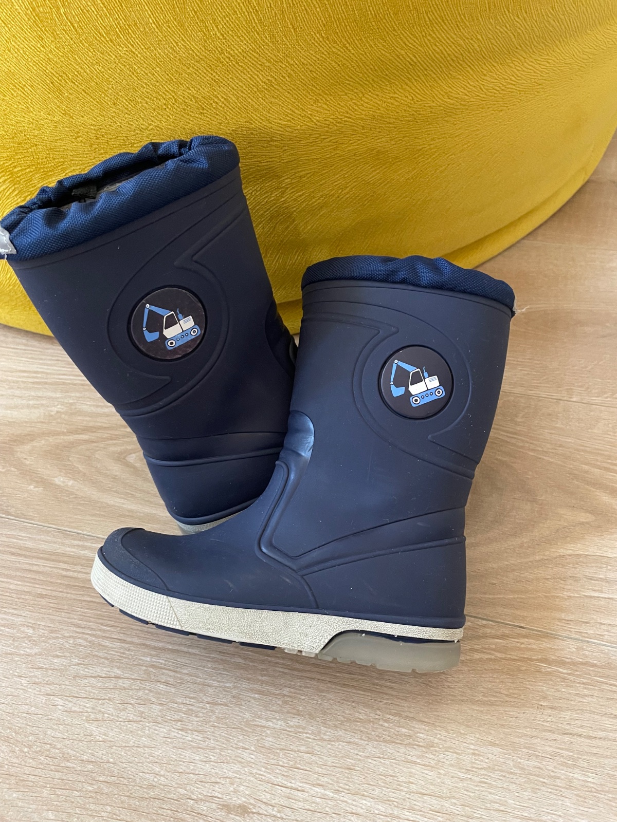 VD 17cm Výborný stav,až na tie okopančeky na špičkách..viď foto. Za mňa nepostradateľna obuv pre dieťa na zimu ,každý rok ich kupujem. Nepremokavé, výška akurát, teplučká kožušina, ľahké obúvanie.....