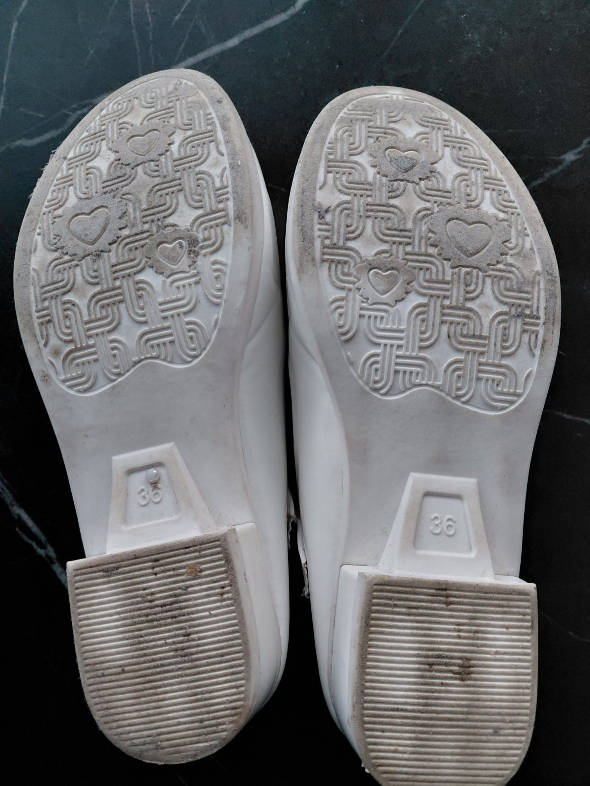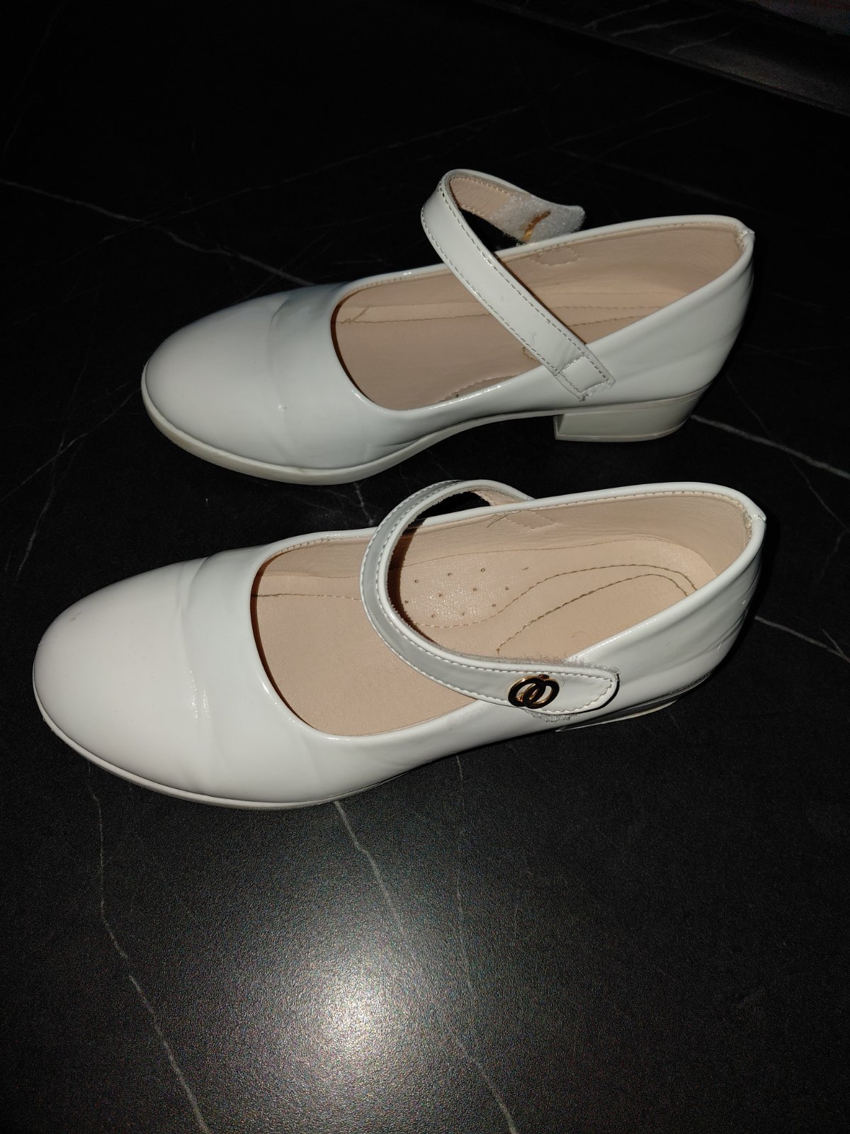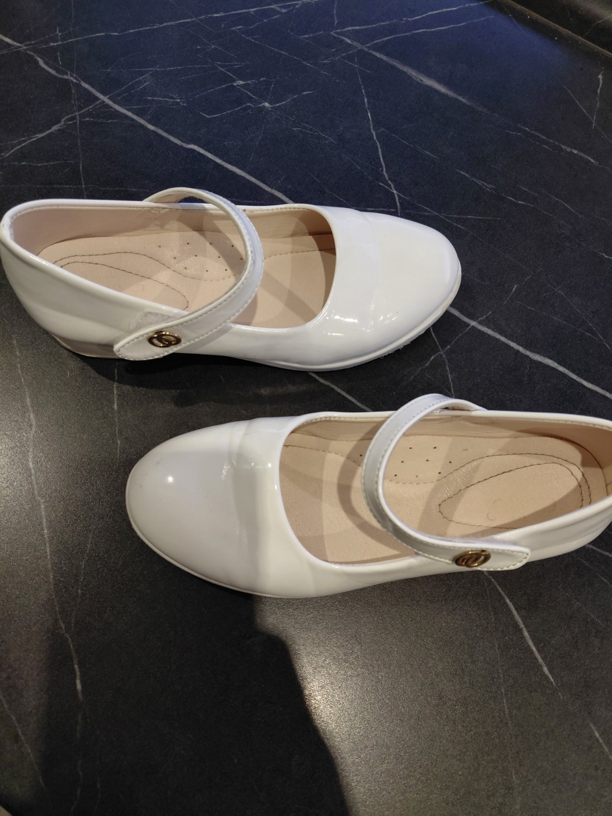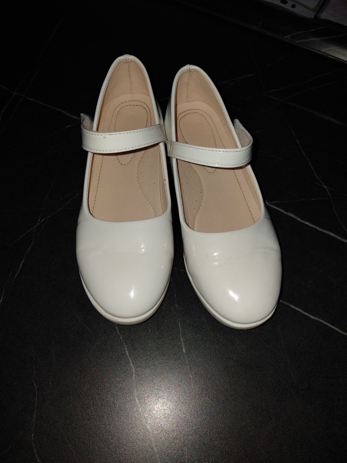 Predám dievčenské spoločenské topánky. Sú biele so zlatými doplnkami. Par krát použité. Jemne vpredu ošuchané.