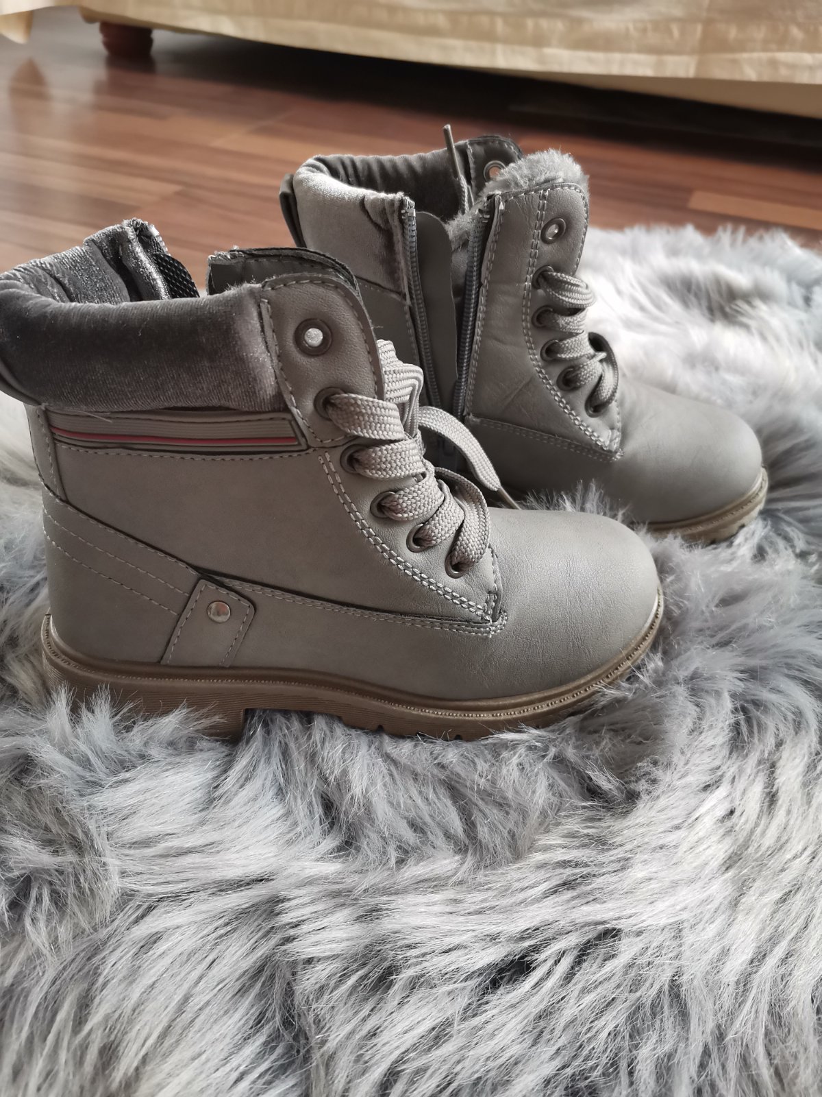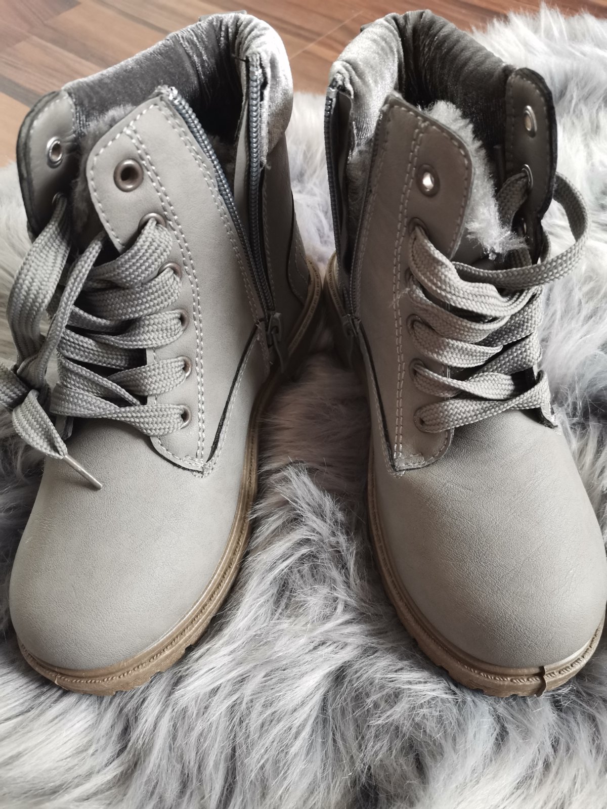 Kvalitné kozene zimne topanky s kozusinkou. Teplucne, v predu male škrabance-pofotene, nic nemenia na funkcnosti. Suché zipsy držia dobre.