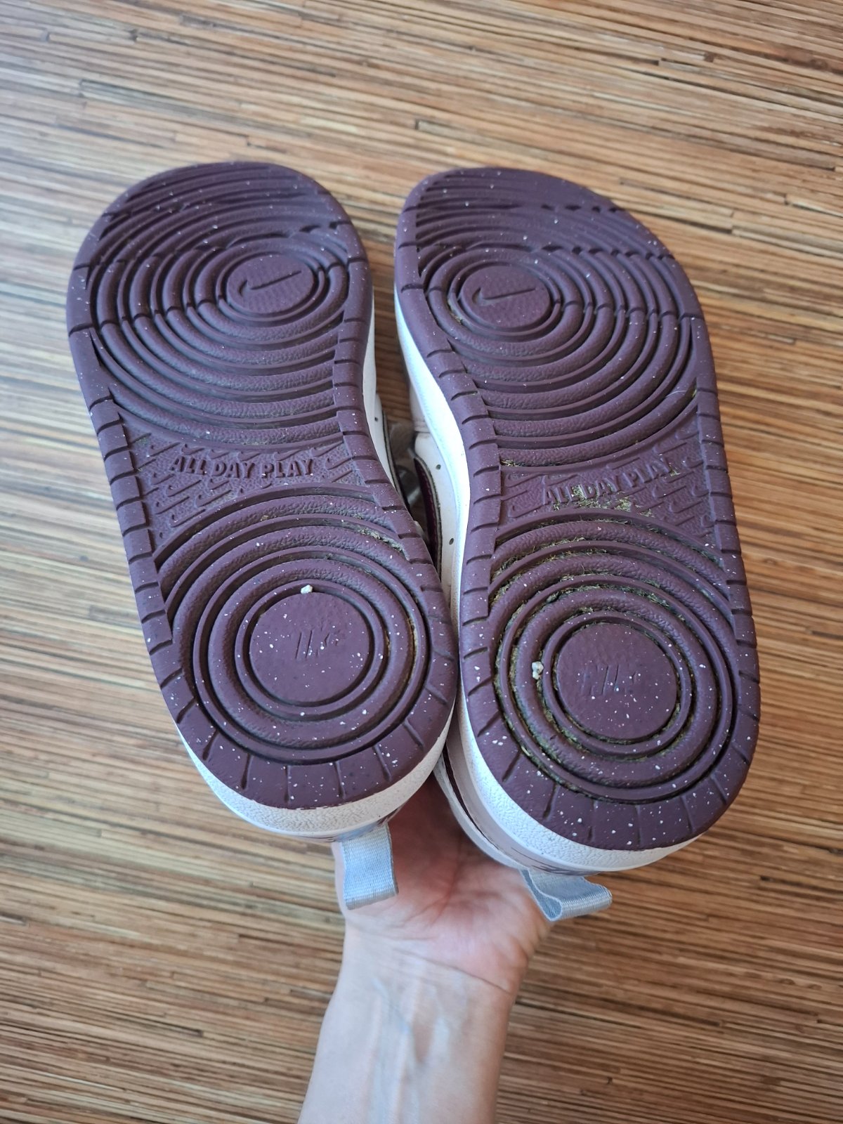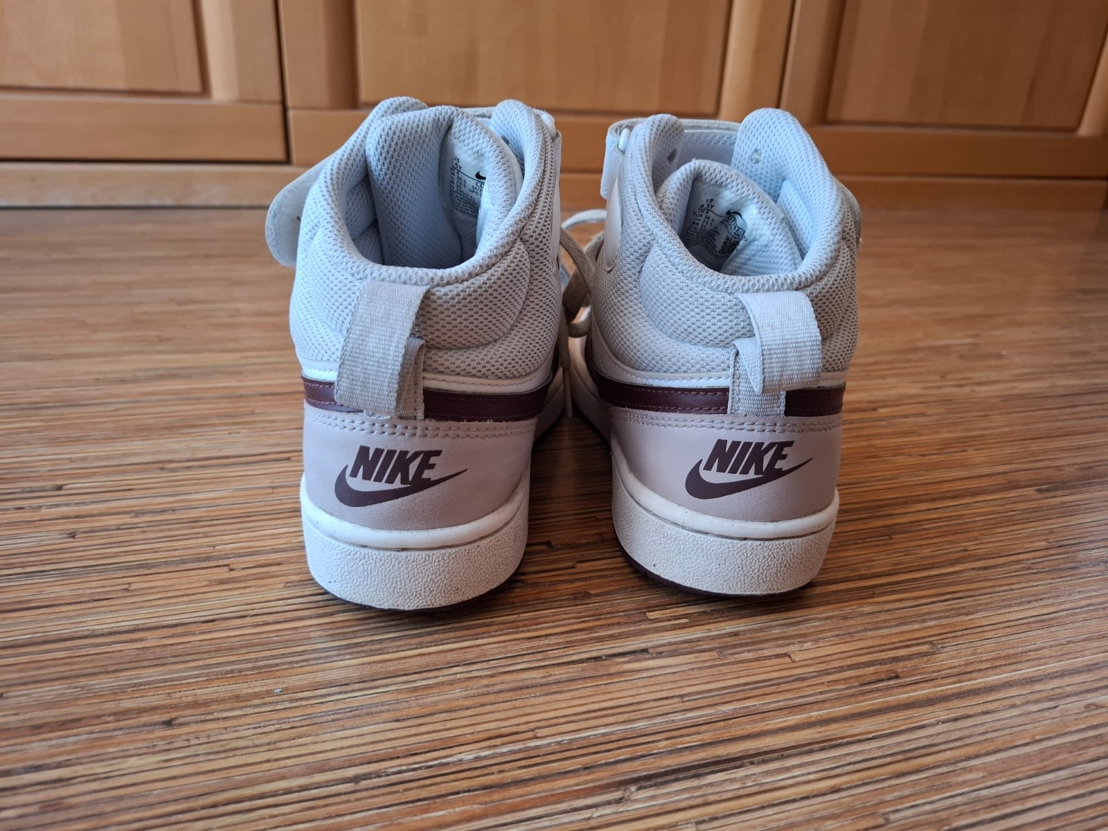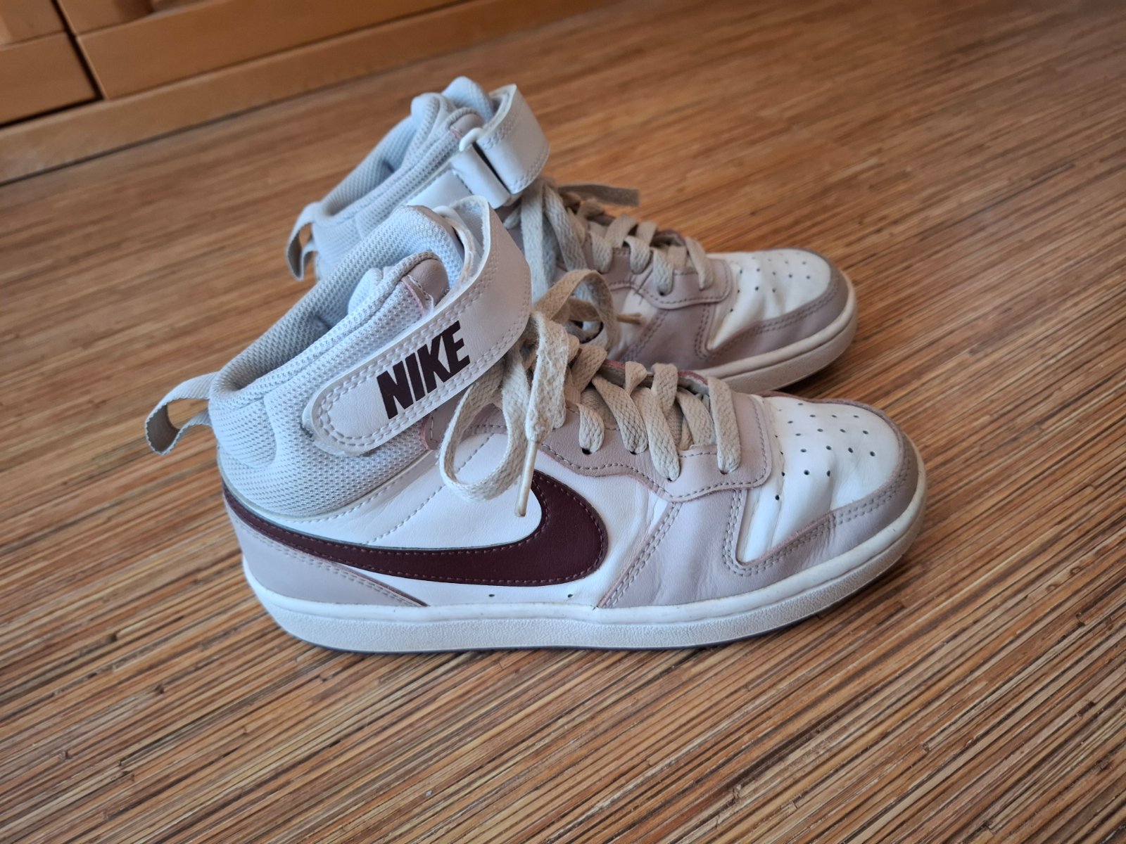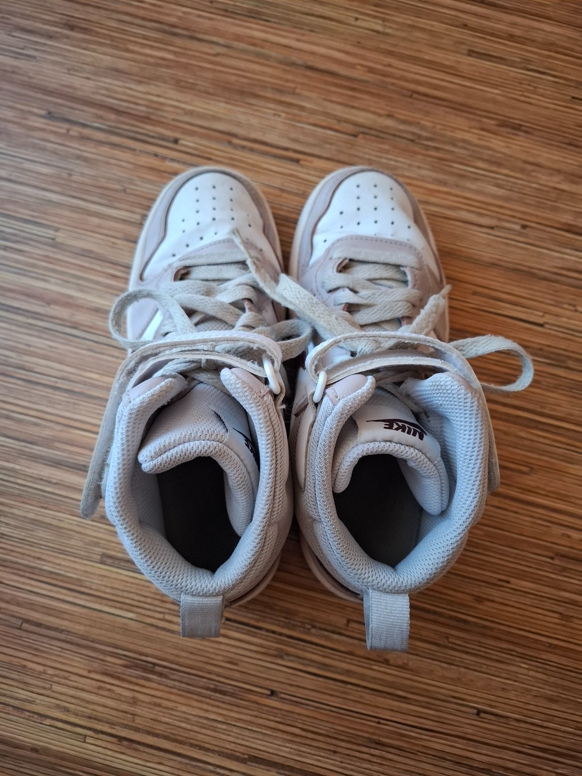 Predám vyššie biele kožené tenisky Nike po mojej dcére. Veľkosť EUR 36,5 (23,5 cm). Pekný zachovalý stav, bez zápachu. Krátko nosené. Po daždi sa koža vpredu zvlnila, ale keď sa obujú, nie je to vidieť. Zapínanie na šnúrky a suchý zips.