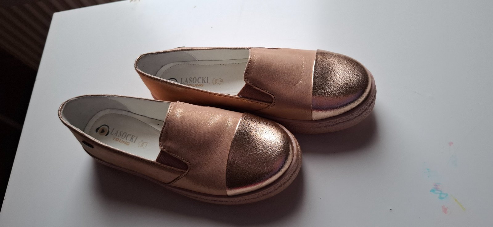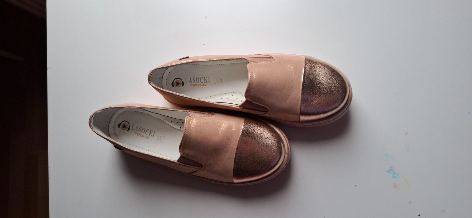 Ponúkam krátko používané bledučko ružové mokasíny Lasocki 33 z brúsenej kože. Sú pekné, neschodené, ideálne na krásne slnečné dni. Veľkosť vložky je vyfotená.