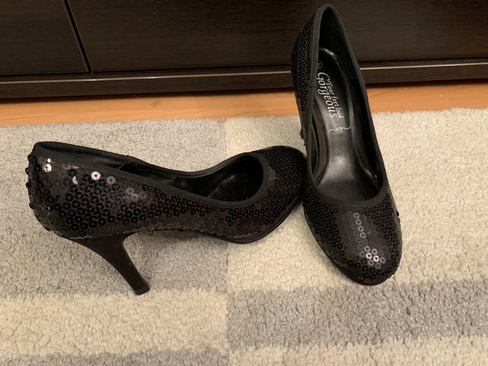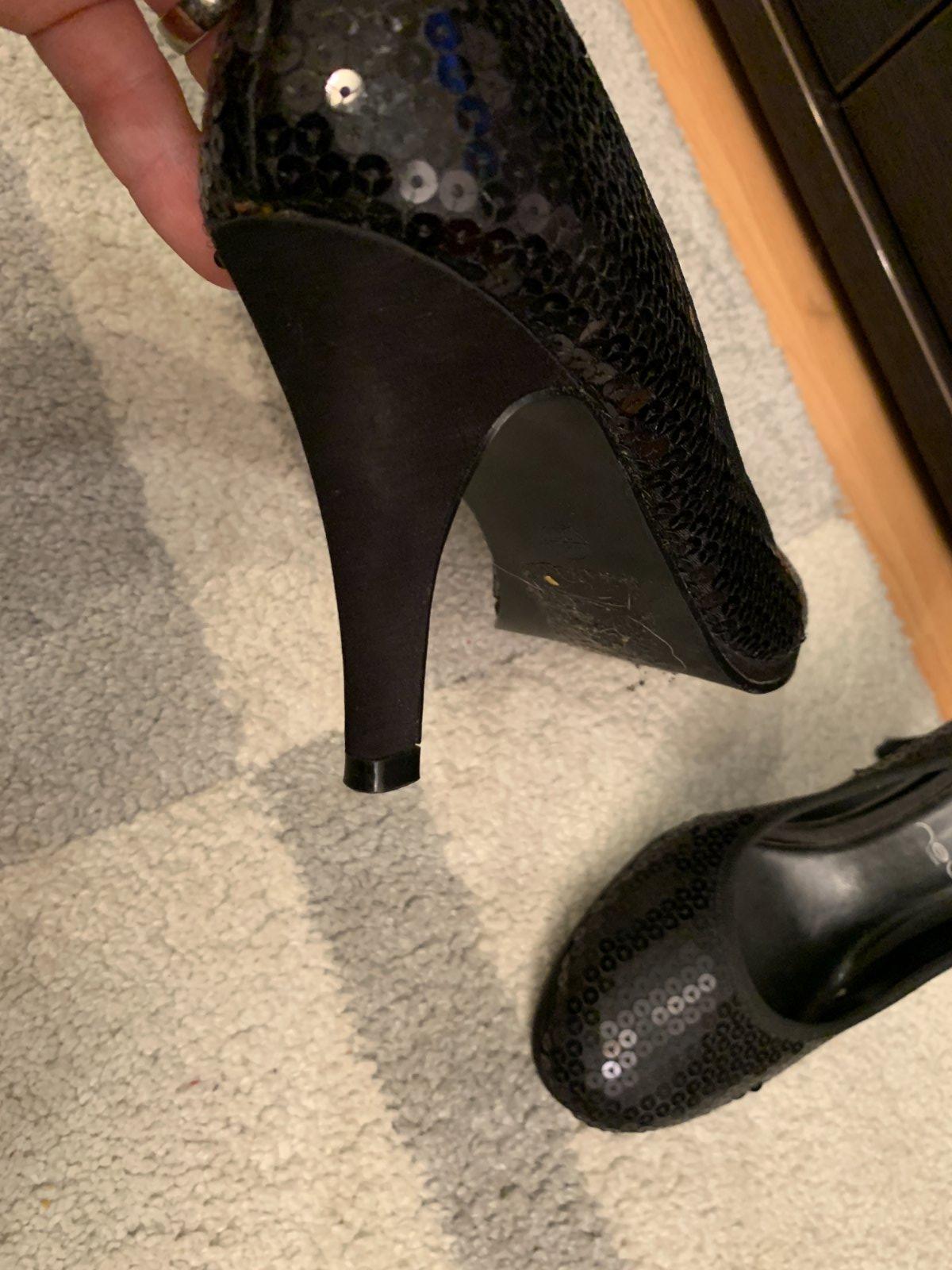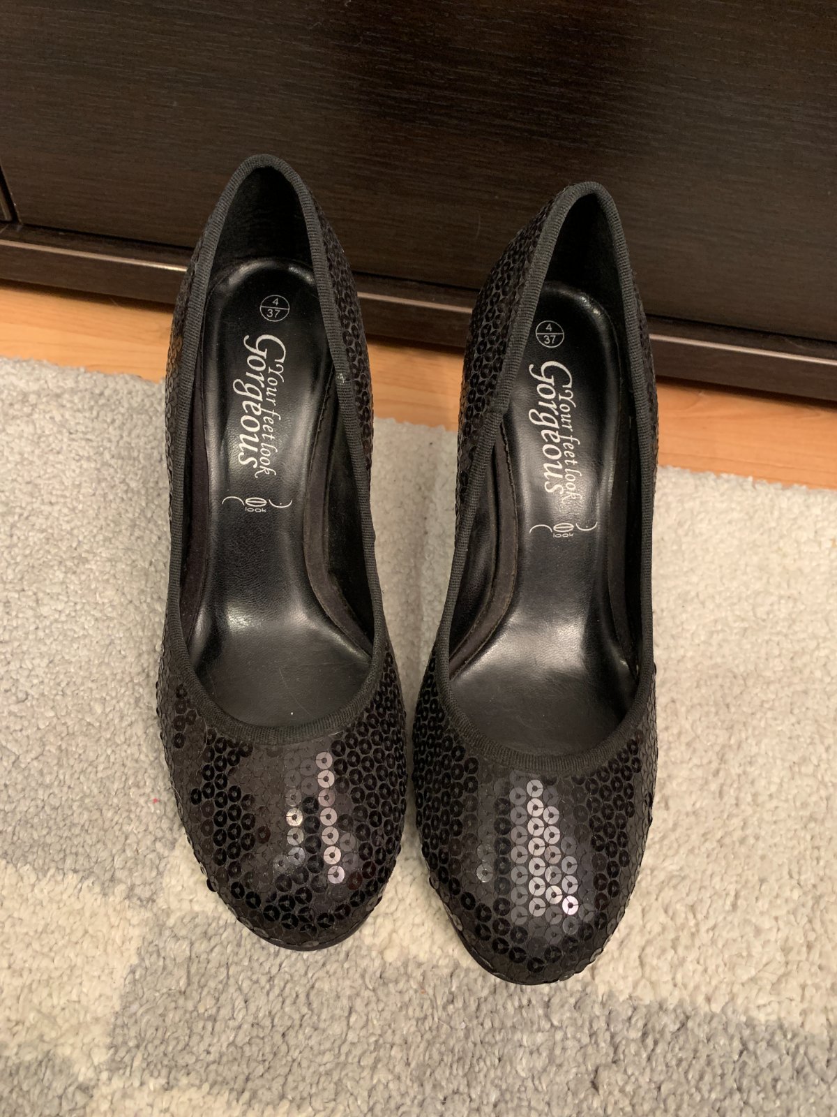 Flitrové lodičky na vyššom podpätku. Dobrý stav bez poškodení. Veľkosť uvedená 37, ale sedia skôr na 36. Vnútorná dĺžka 23,2cm.