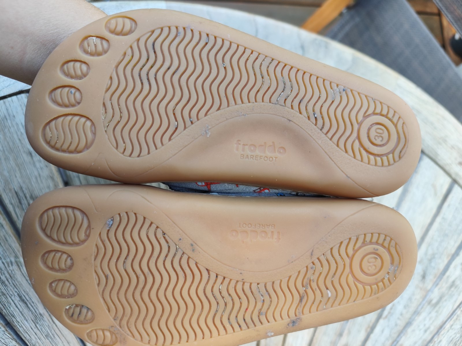 Froddo plátenky, po jednom dieťati, nosené občasne, VD 20,3cm, VŠ 7,5cm.