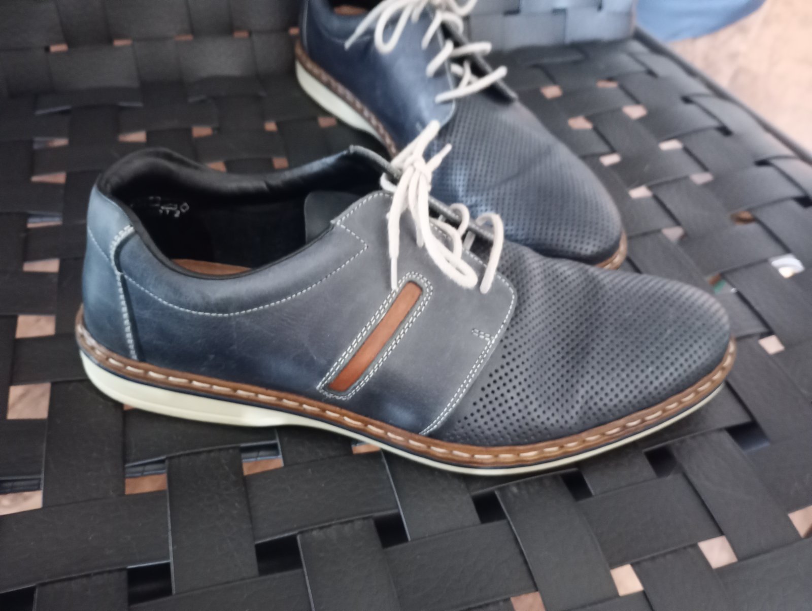 Krásne, kožené, tmavomodré poltopánky. Zn.Rieker. Sú ľahučké, pohodlné. Obuté raz na na oslave. Manžel je športový typ. Sú v top stave ako nové. PC 55 €