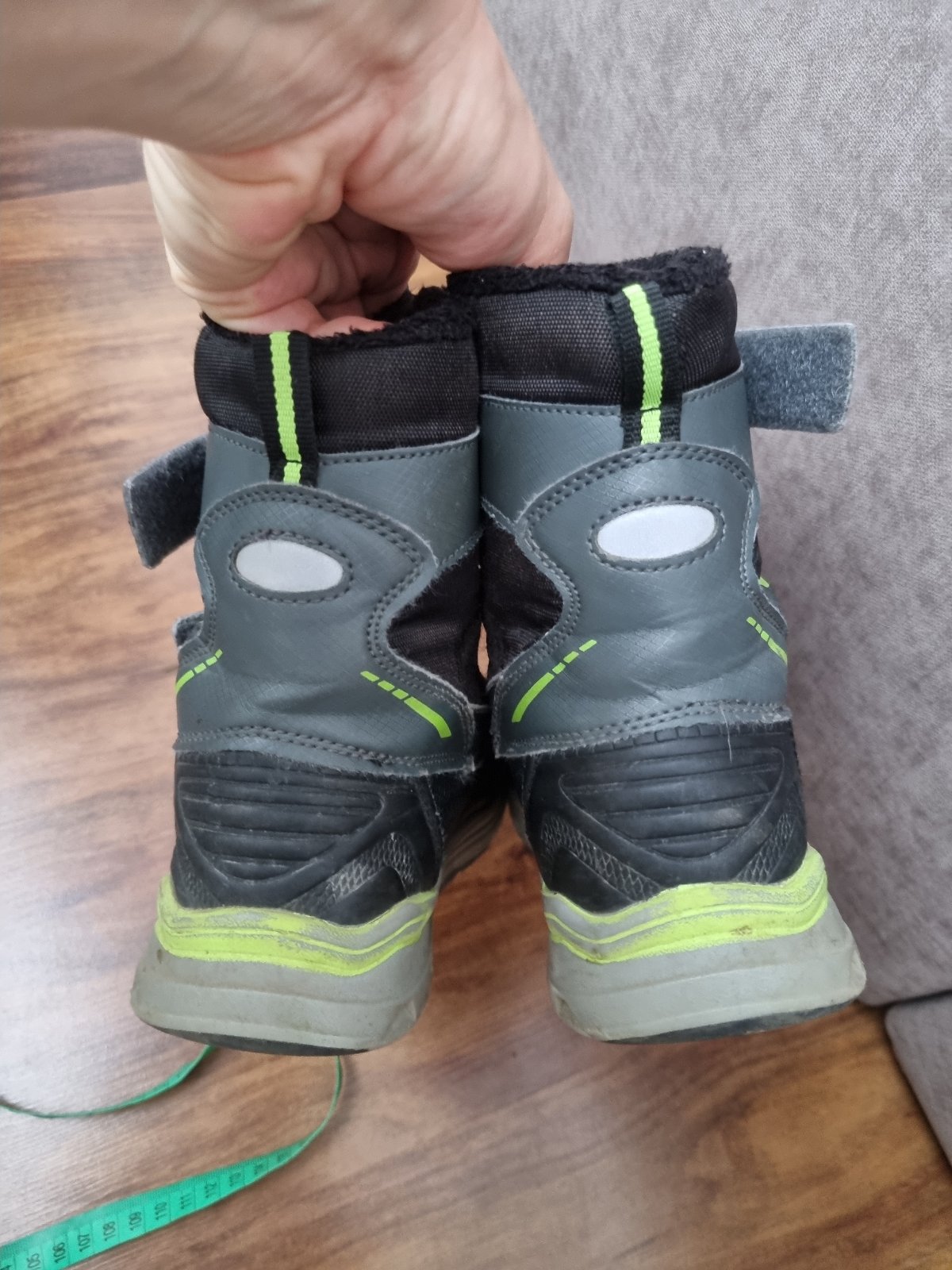 Nosené, zachovalé, nerozliepaju sa, nepopraskane, iba jemné mechanické chybičky, vhodné do školy a snehu vo vnútri zateplene, vnútorná dĺžka 22,5cm