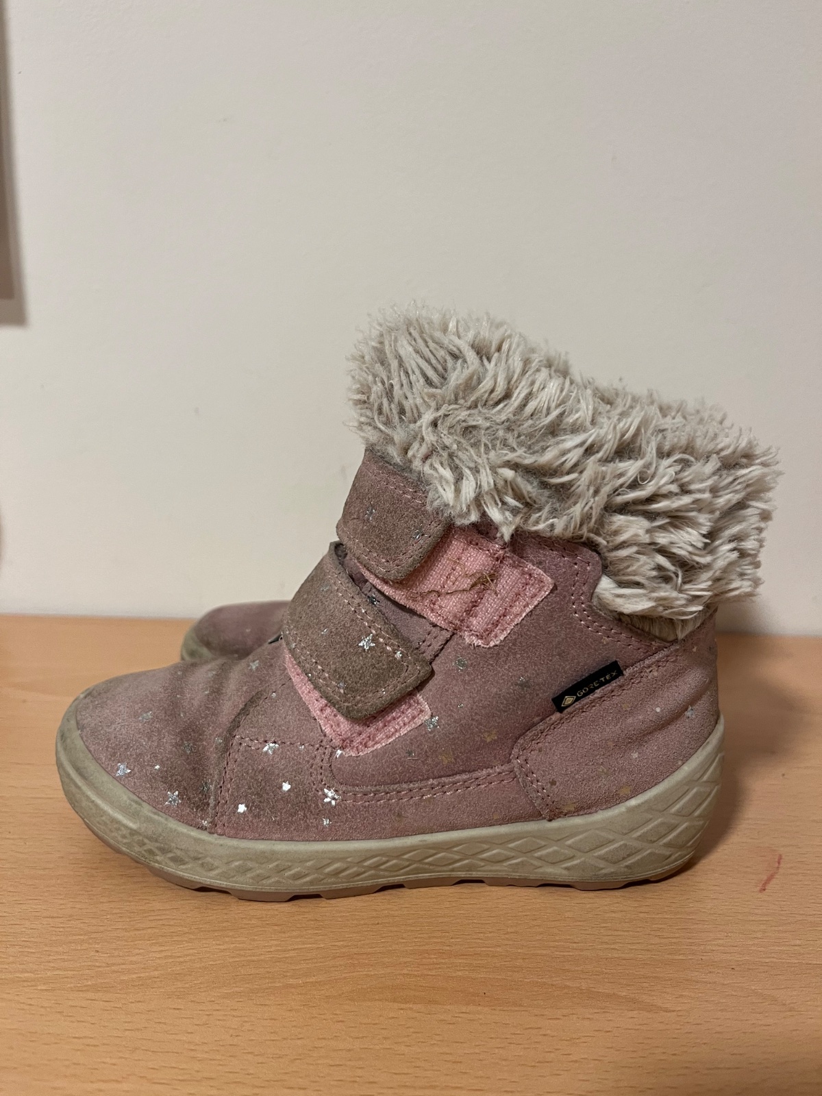 Predam zimné topánky Superfit s Goratex úpravou, nepremokavé. Nosene na striedačku s ďalšími, podrážka v super stave. Farba bledoružová/staroružova so striebornými hviezdičkami. Veľmi teplé. Osobný odber v Bratislava, inak plus poštovné.