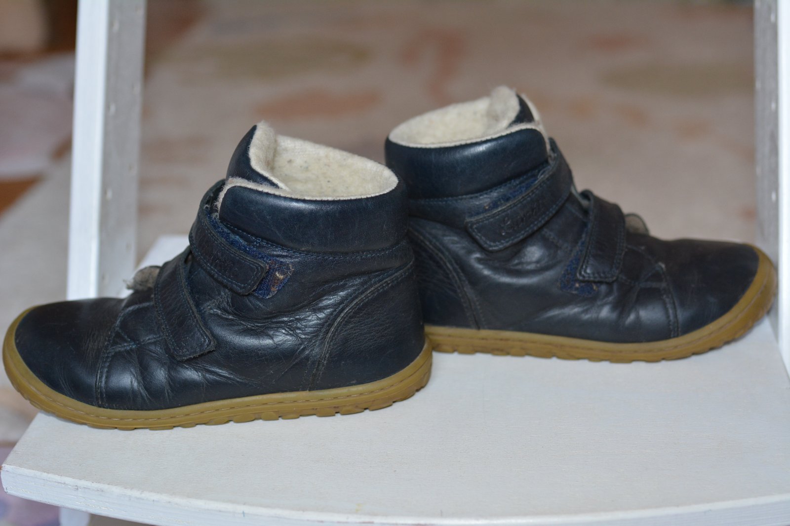 Predám len dcérkou nosené 1 sezónu na striedačku s inými topánkami kožené barefoot zimné topánky zateplené ovčou vlnou, skôr pre užšie nôžky, č.31 s vn. dĺžkou cca 20,6-20,7 cm. Pekný zachovalý stav, bez funkčného poškodenia, akurát (je to nafotené, na zapínaní topánky, ale z vnútornej strany - takže keď sa zapnú, je to tá strana, ktorú pri nosení nie je vidno, je trochu odretá koža). Pôvodná cena vyše 60 eur. Predám za 27 eur + poštovné.