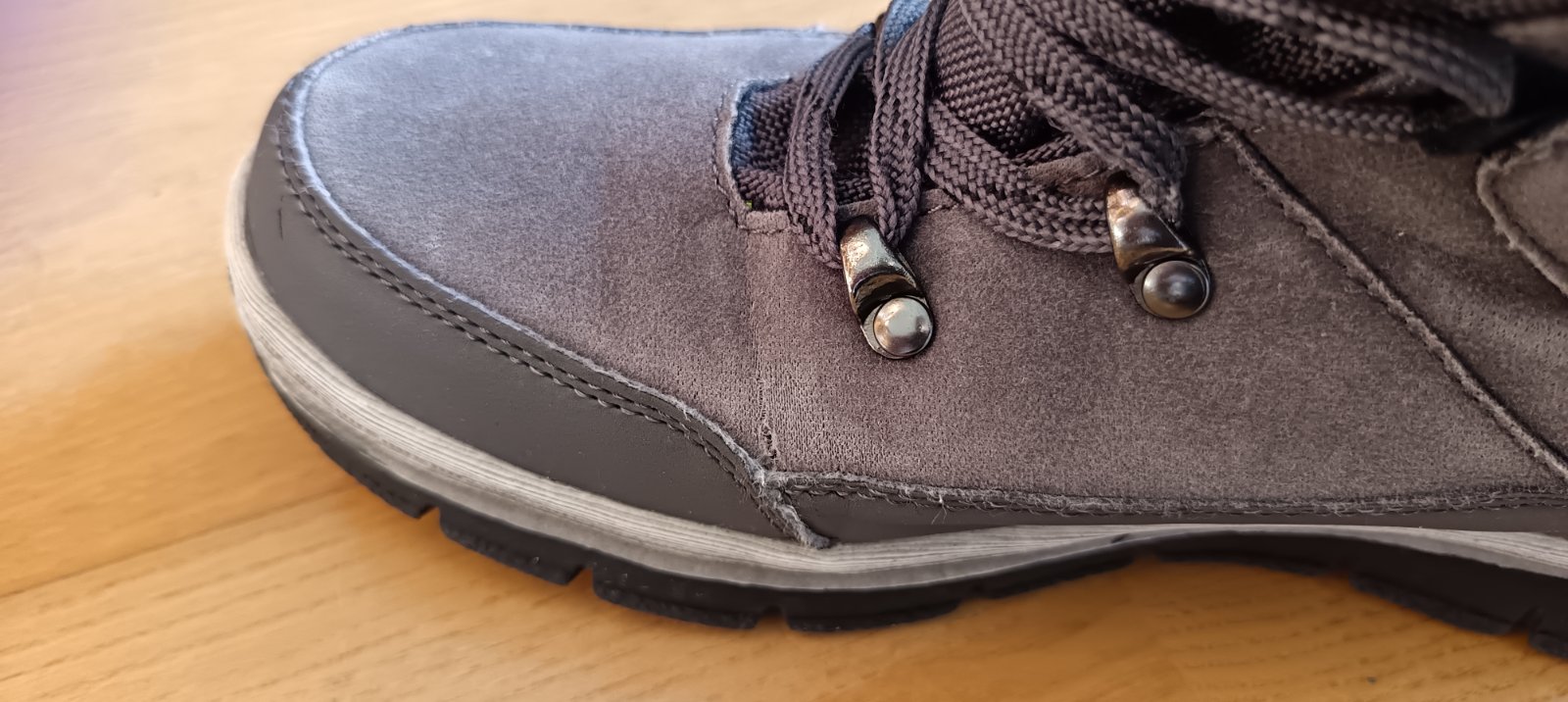 Na pravej topánke trochu viac vyšúchané na zhybe-viď detail na fotke. Vo vnútri tiež v oblasti paty vyšúchané.