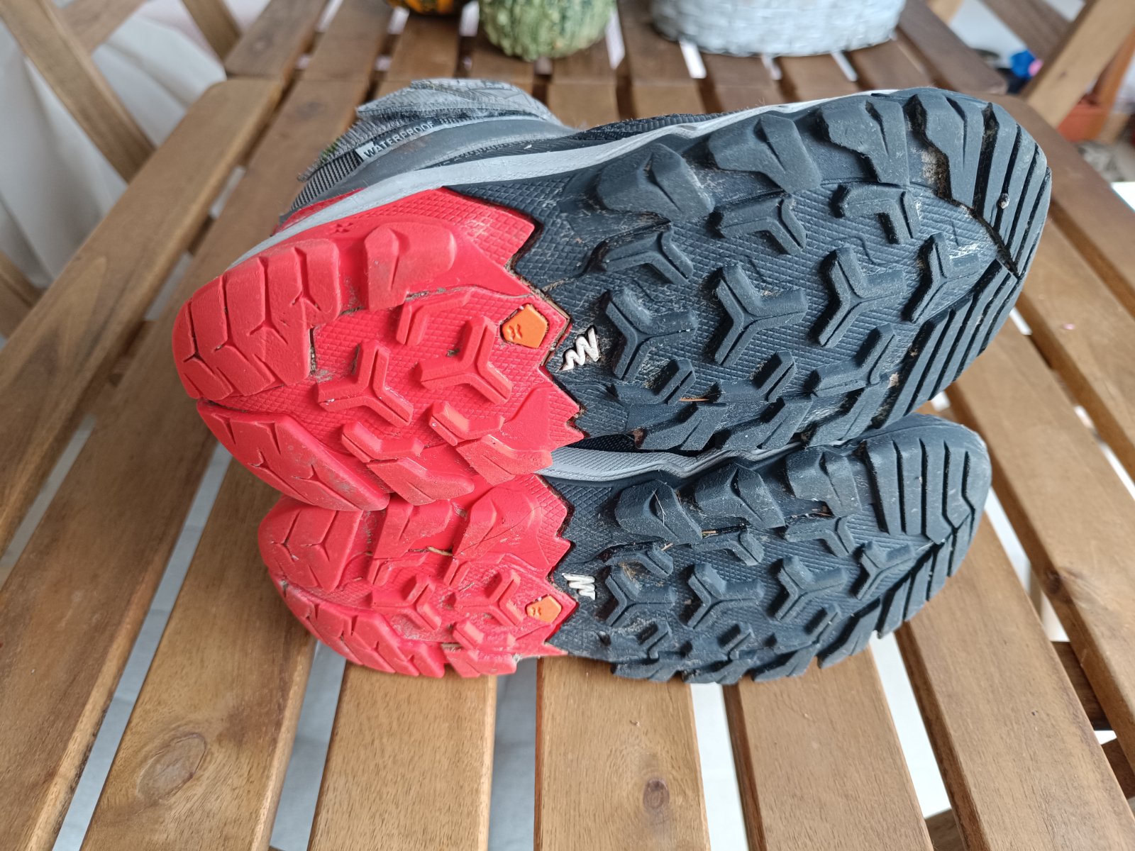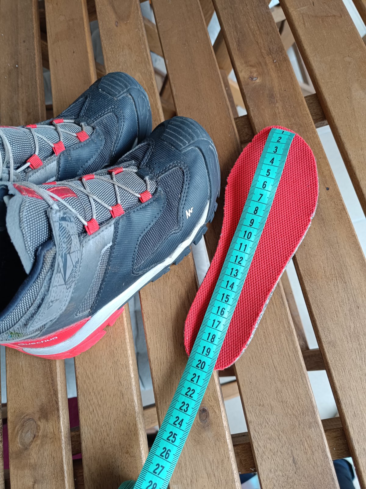 Predám zachovalé turistické topánky z decatlonu. Sú vzdušné.neposkodene. Stitok sme odstránili. Veľkosť by mala byť 31. Biele farba na podrážke je od leukoplastu Dá sa odstrániť.plus pošta
