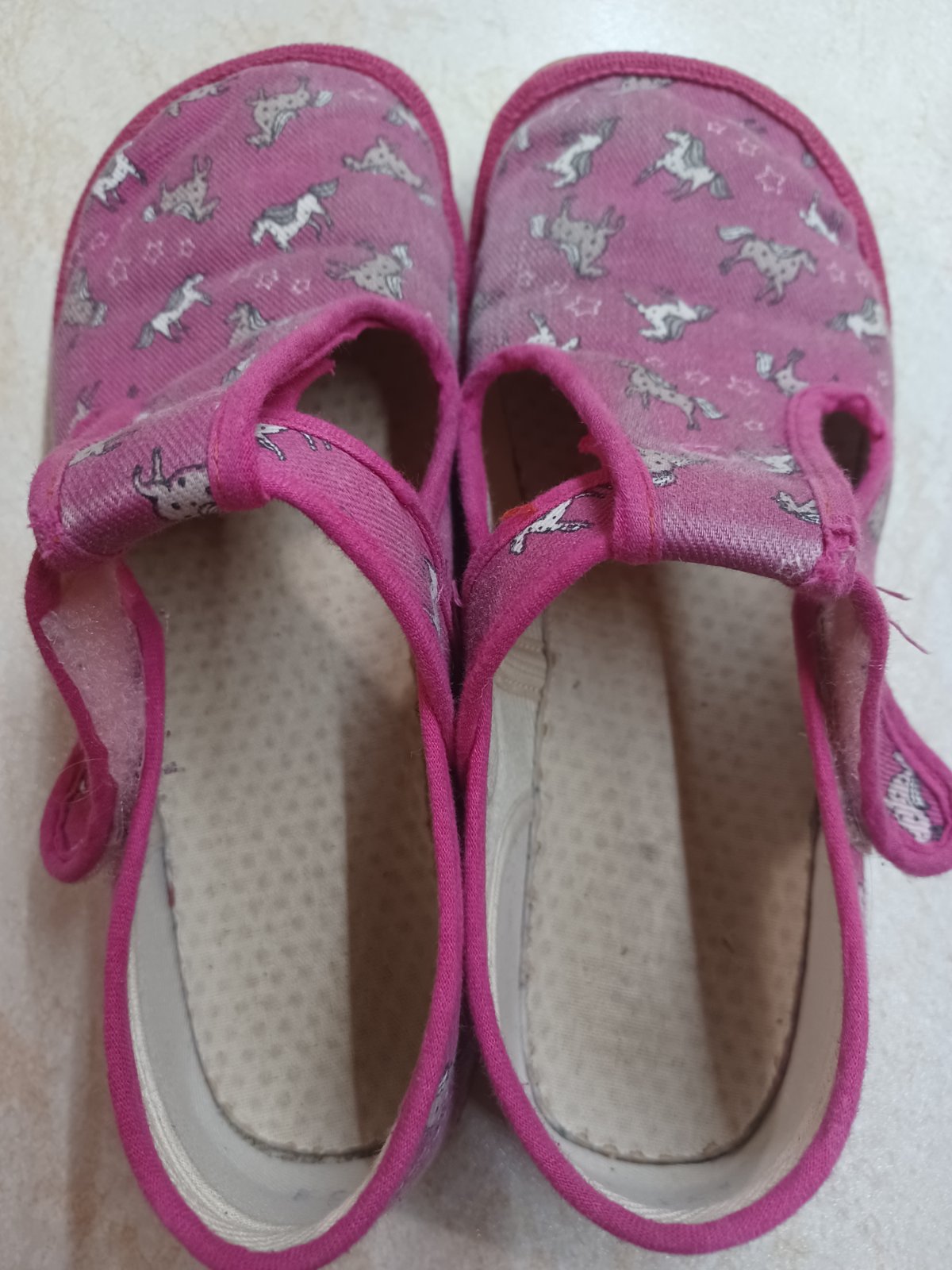 Predám dievčenské papučky Beda, vzor Ružový koník, veľkosť 33, rozmery 21,2 cm. Cena 12,00 + poštovné.