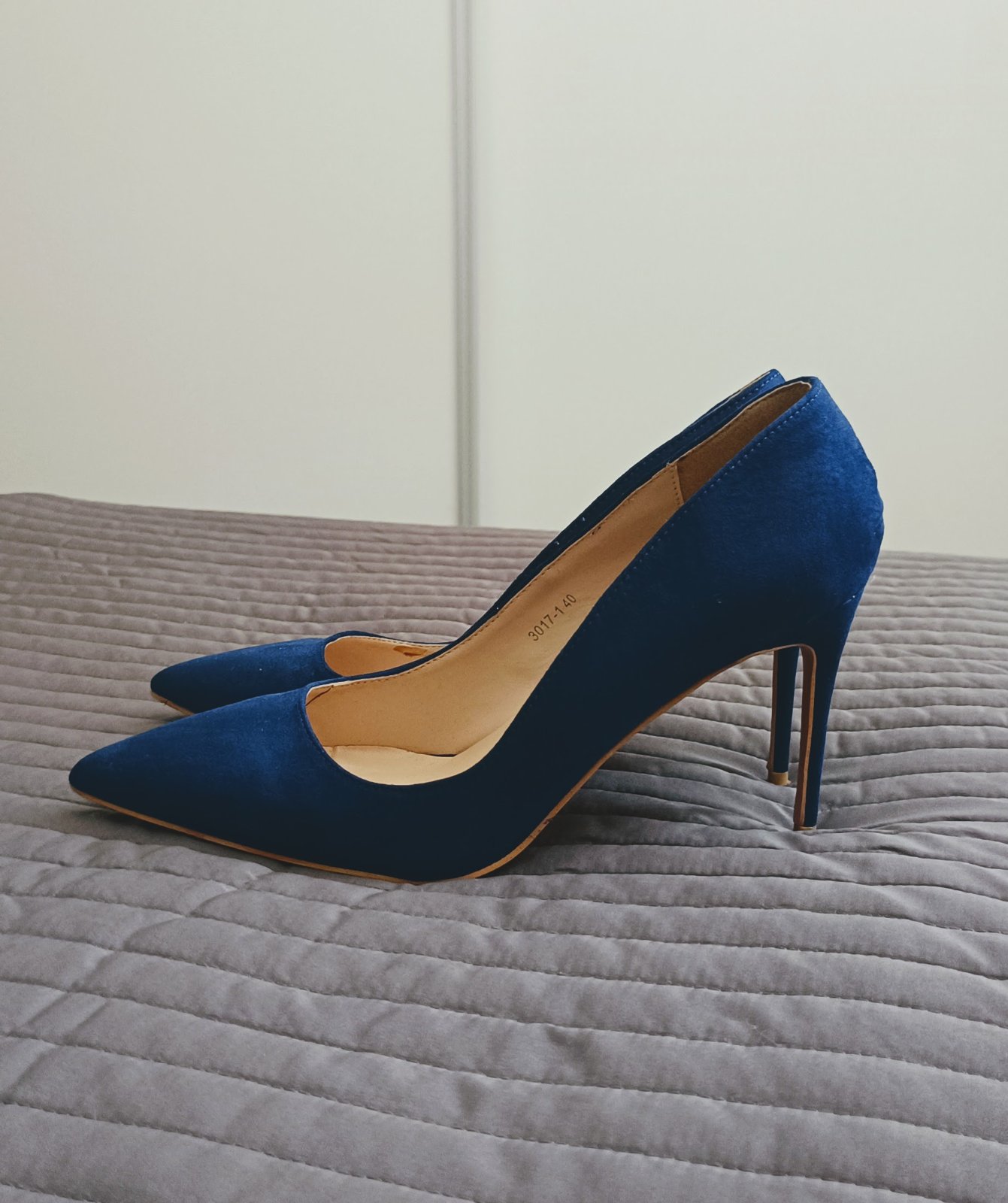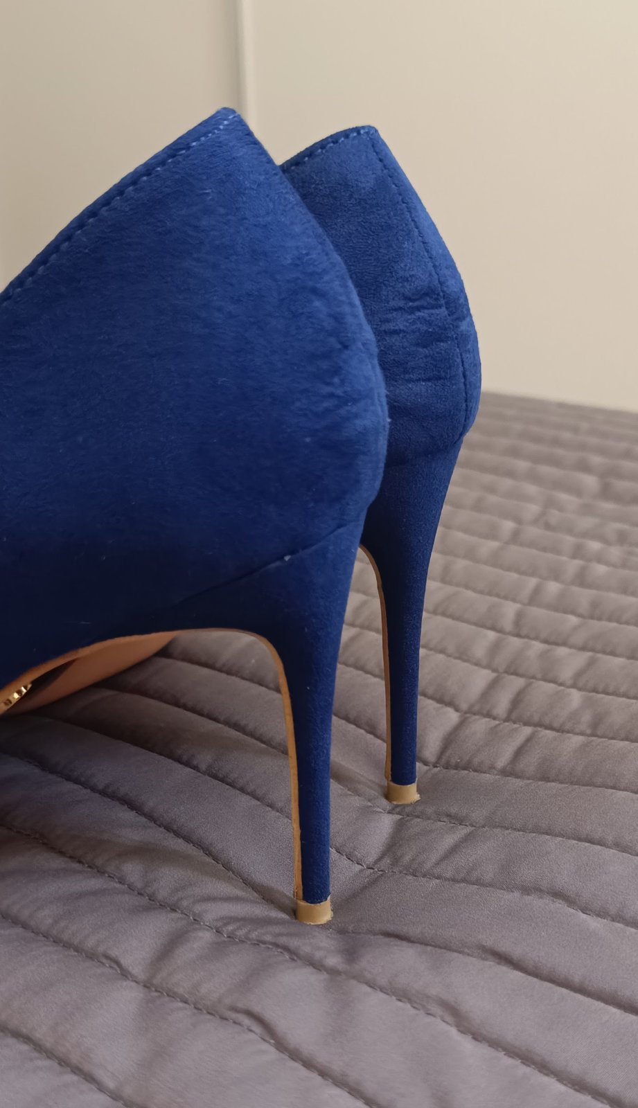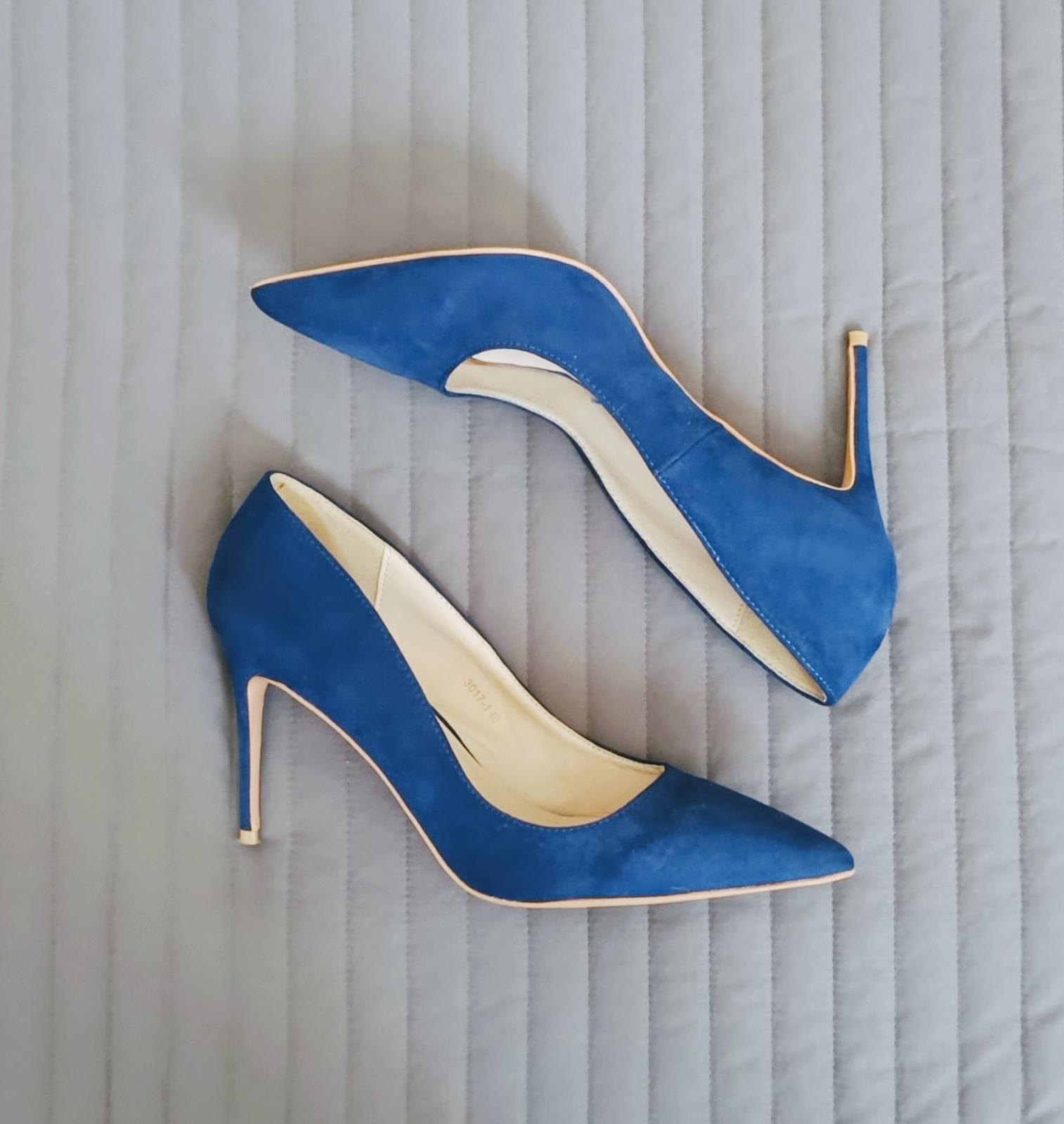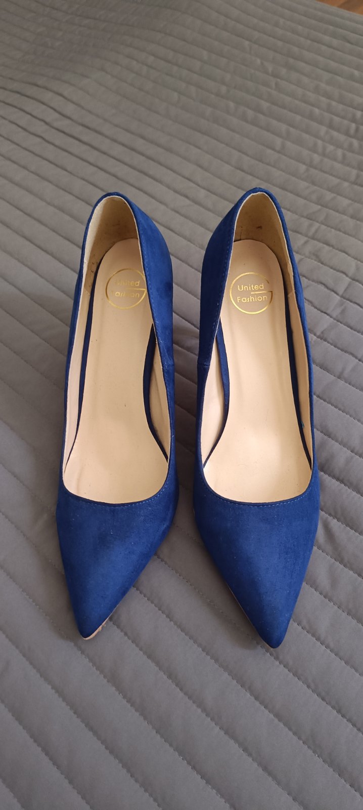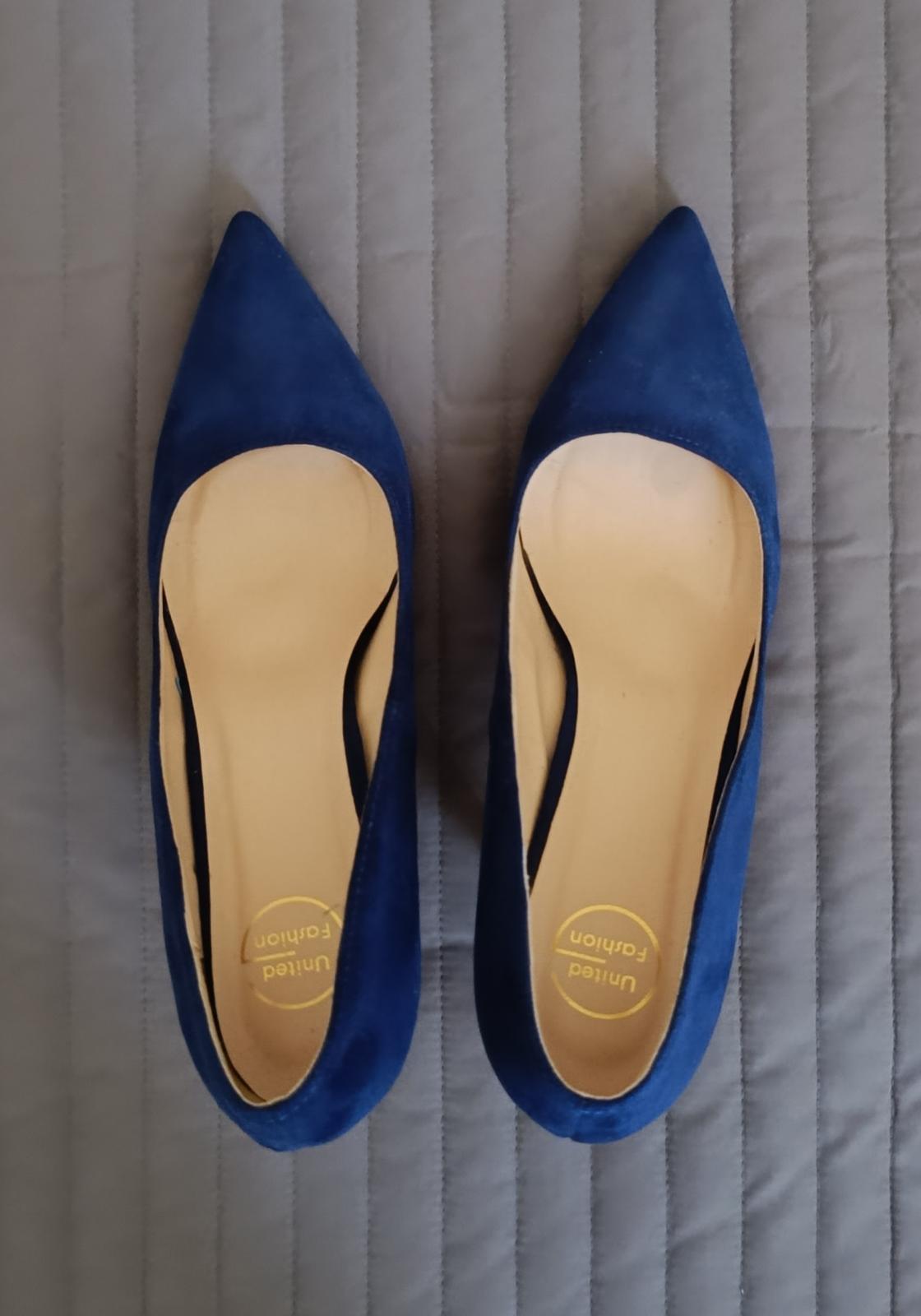 Lodicky klasickeho strihu, farba parizska modra, velkost 40, tenky opatok, vyska opatku 8cm, znacka United fashion, kupovane nove, pouzite 1x na svadbe, bez chybicky.