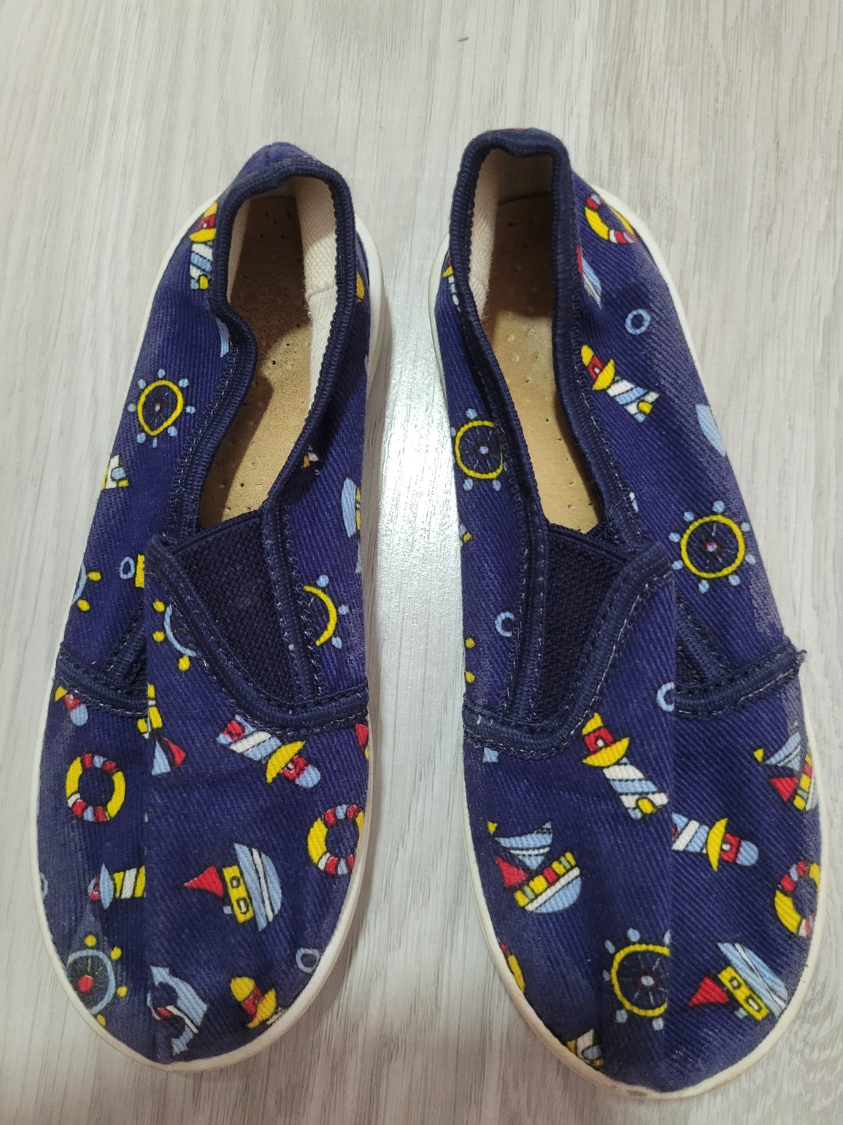 Detská domáca obuv - papuče, s gumotextilným pásikom cez priehlavok určená pre deti cca od 2 do 10 rokov. Papuča je ľahká, pružná, vyrobená z textilu (zo 100%-nej bavlny), ktorý zabezpečuje prieduš...
