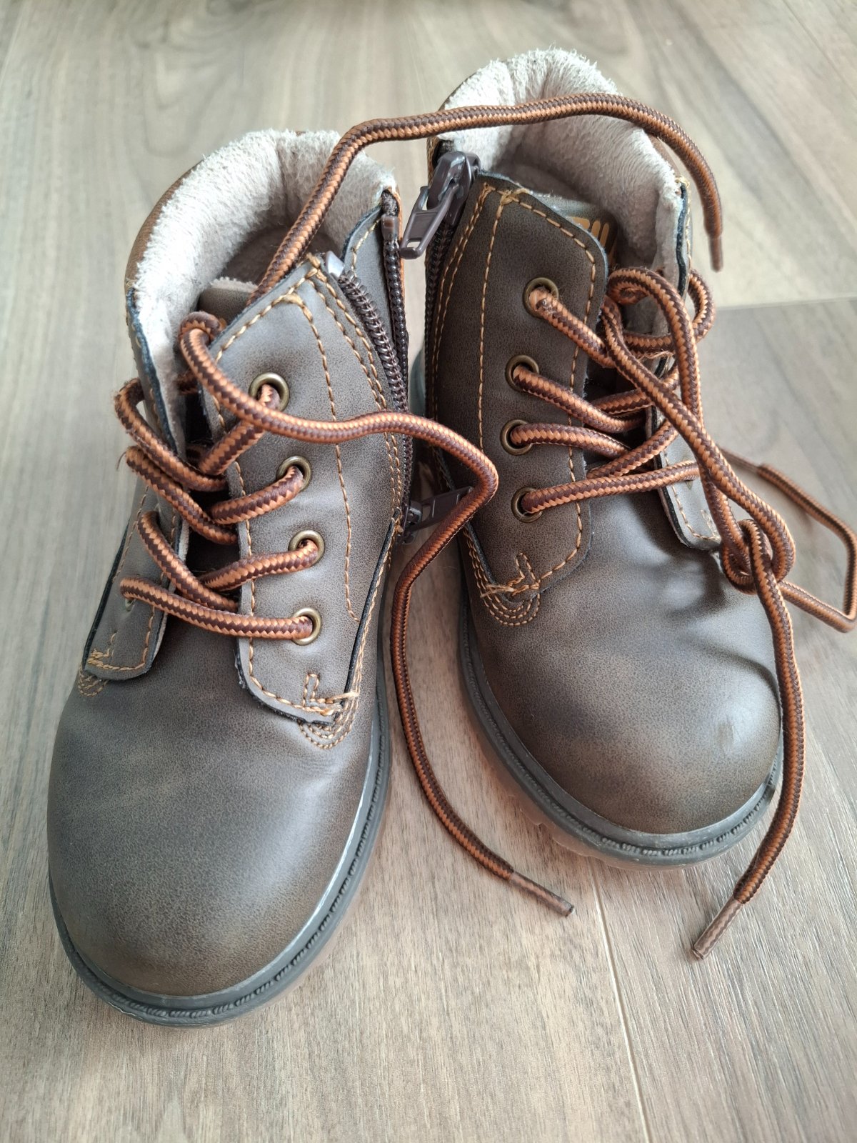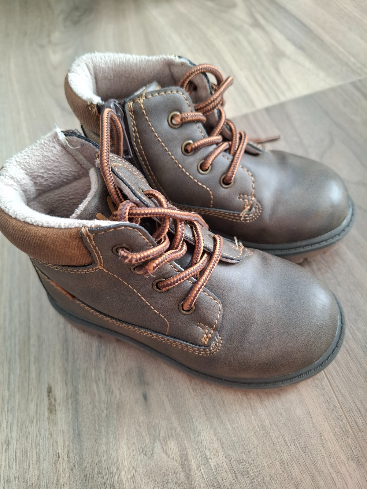 Nosené 1 zimu, zachovalé, ale jemne šuchnutá resp. okopnutá špička, pri nosení to nevidno, iba keď sa pozriete z blízka. Vnútorná dĺžka 16 cm.