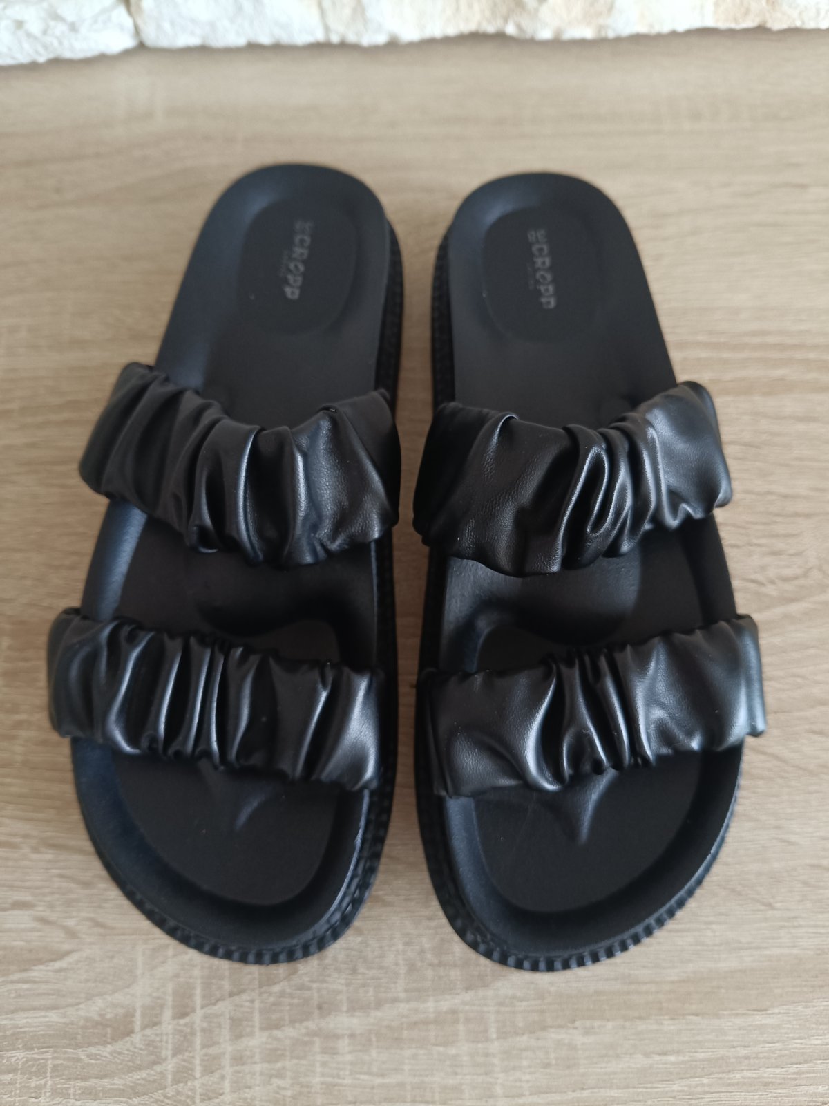 Predám čierne šľapky po mojej dcére, sú ako nové, obula si ich jedno leto asi 3x, noha jej rýchlo vyrástla, preto posúvam. Päty a podrážky neschodené, špice neokopane/nezosuchane.