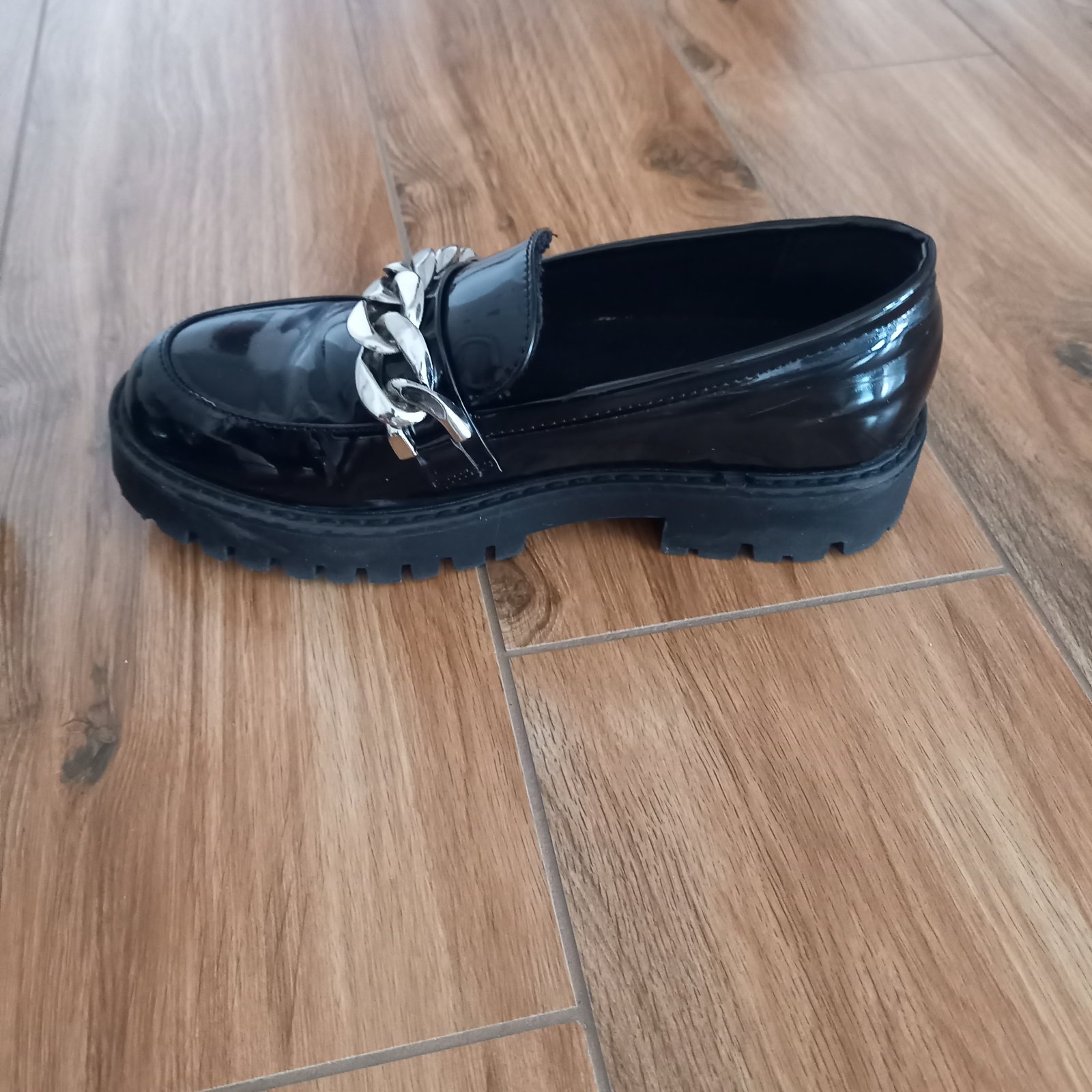 Lakované mokasíny s retiazkou. Jemné šuchnutie, ale pri nosení to nevidno, takže podľa mňa stále veľmi dobrý stav. + poštovné