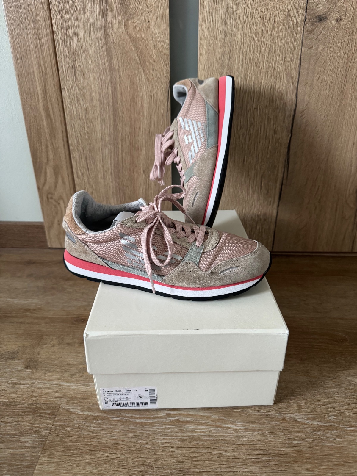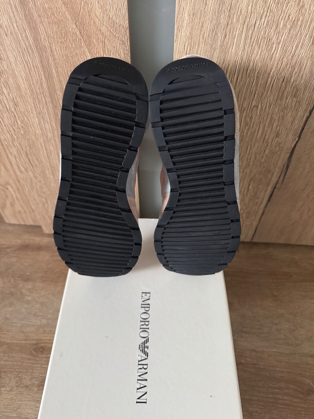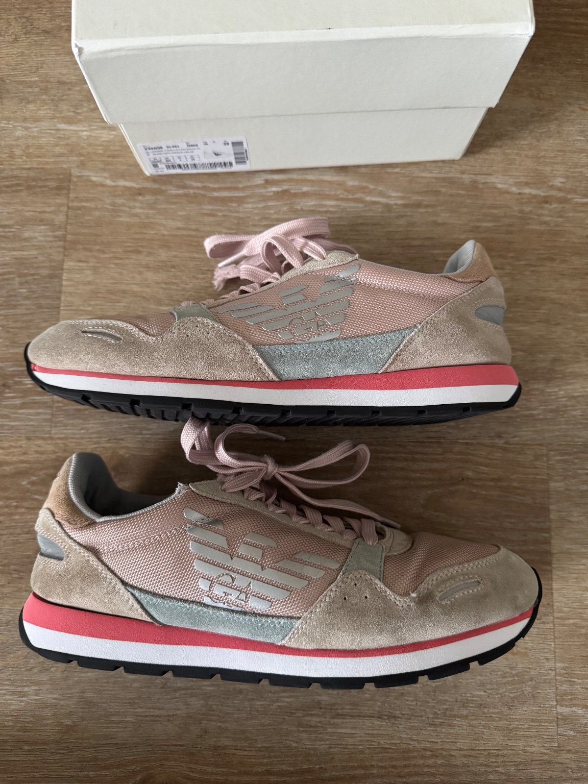 Ponúkam krásne tenisky Emporio Armani v peknej farebnej kombinácii staroružovej a striebornej. Majú reflexné prvky a boli občasne nosené. Naďalej vo veľmi peknom stave viď. foto ( 1 šnúrka na konci rozstrapkaná), podrážka je neschodená. Veľkosť je uvedená 39 a vnútorná dĺžka je uvedená 24,9cm, čo aj sedí ideál na nohu 24,5-25cm. Vrátane krabice. PC vysoká. Poštovné podľa taríf.