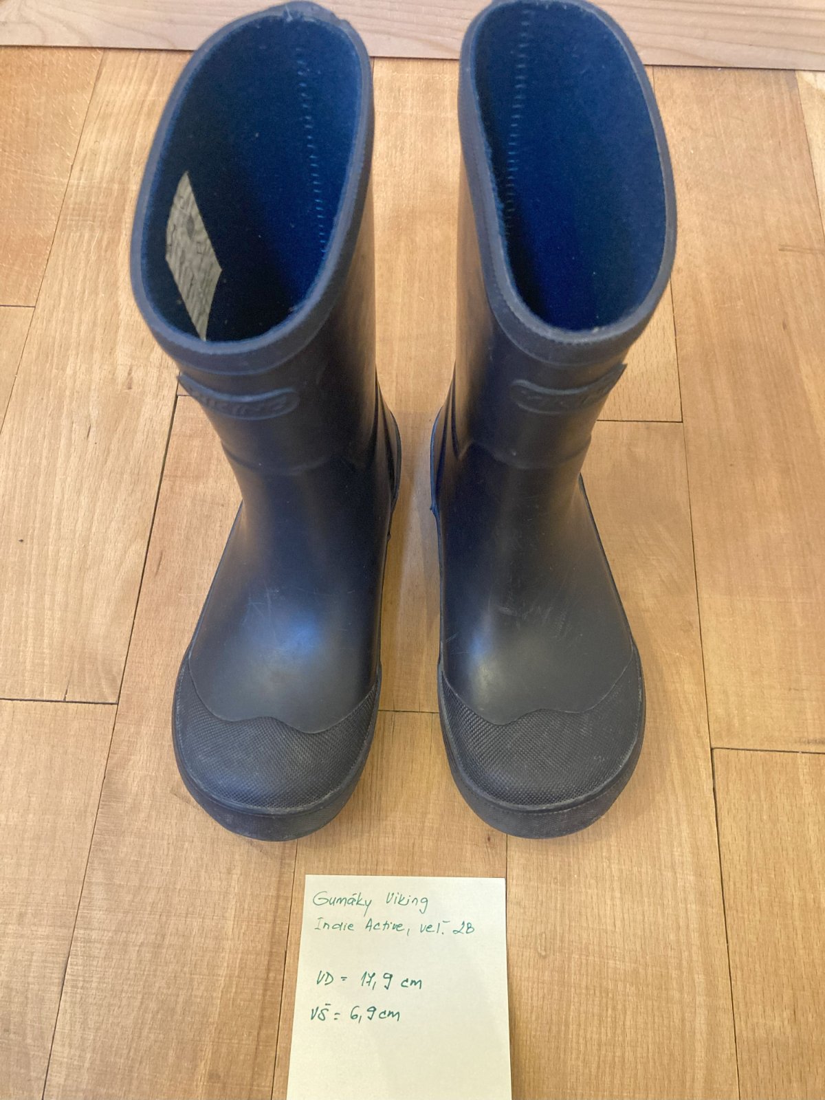 Predám tmavo modré gumáky vo veľkosti 28. Nosené, zachovalé. Cena: 5 eur
