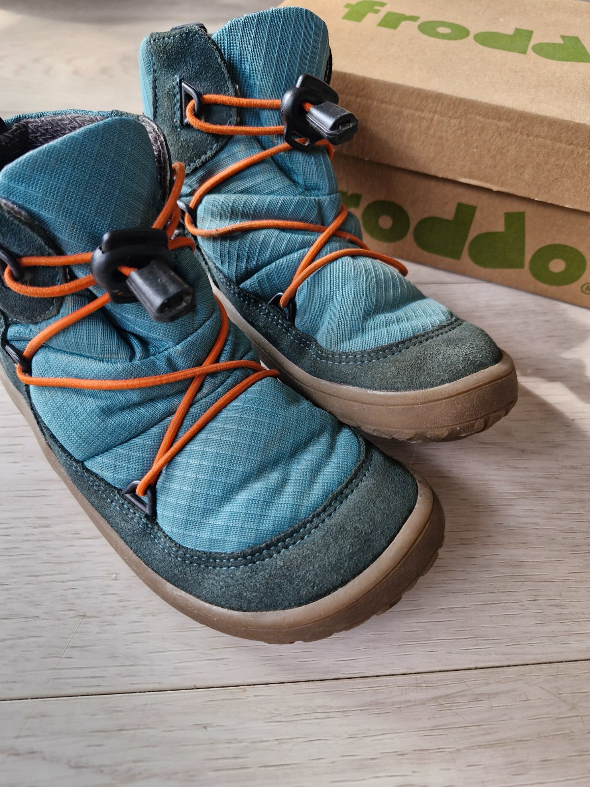 Výborné prechodné/ celoročné topánky, ľahké a ohybné, priestorné vo vnútri, vyberateľná vložka z kože, sťahovateľné na gumku, nepremokli