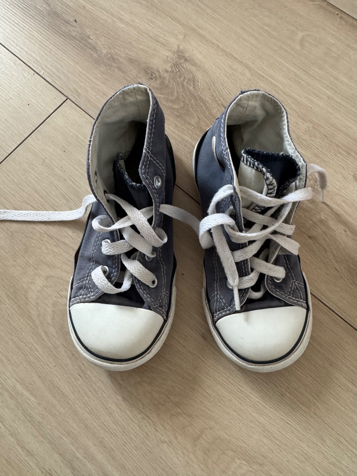 Nosené tenisky, gumenne špičky, na jednej tenisky odlupnute, nám nevadilo, vrch brúsena koža, VD 16,5cm vid foto, radi sme nosili