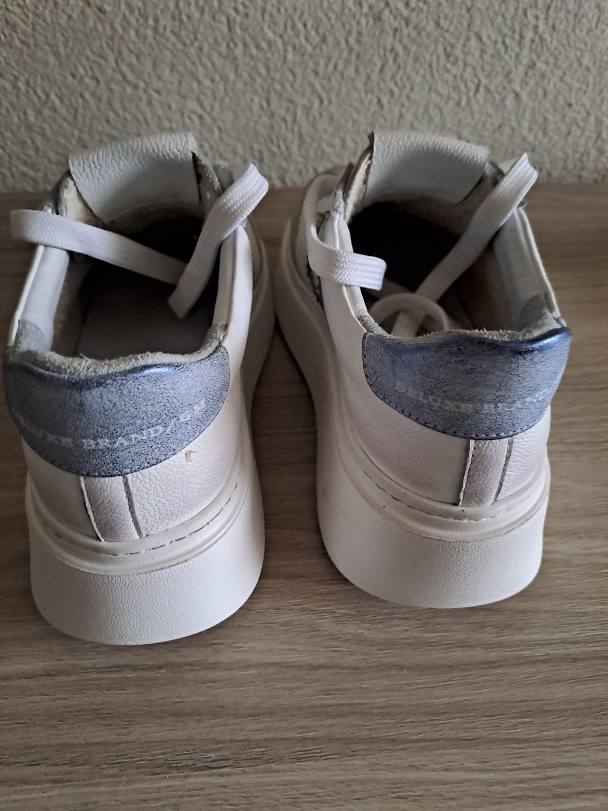 Kožené tenisky, bielo modré kombinované s béžovou, nosené minimálne najviac 3 krát, nesadla mi veľkosť