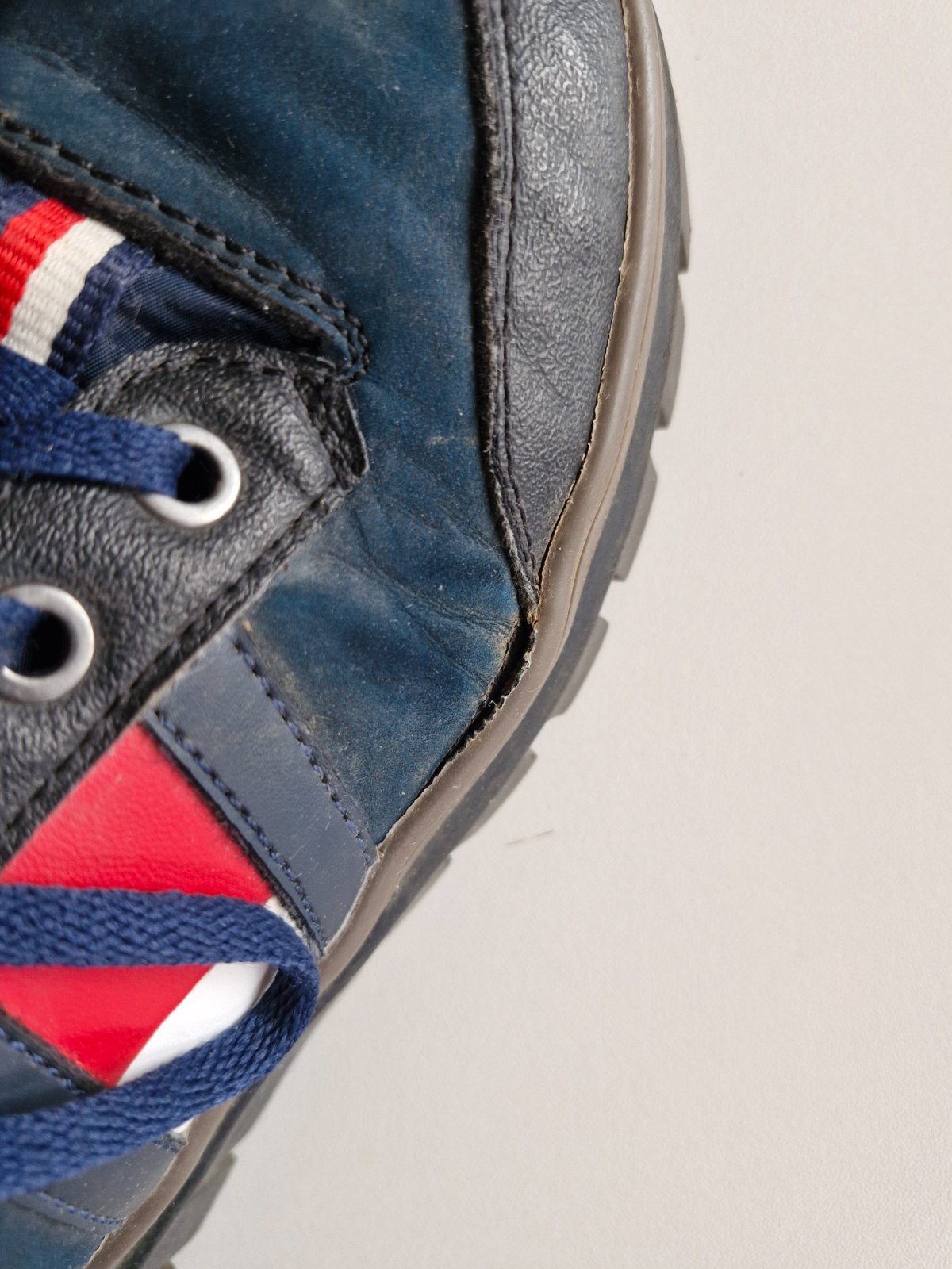 Tommy Hilfiger originál Stav nafoteny, cena prispôsobena (v oblasti päty na vnútornej strane potrhané) Kotníkové tenisky Zapínanie na zips a šnúrky Sneakers G4600H97688