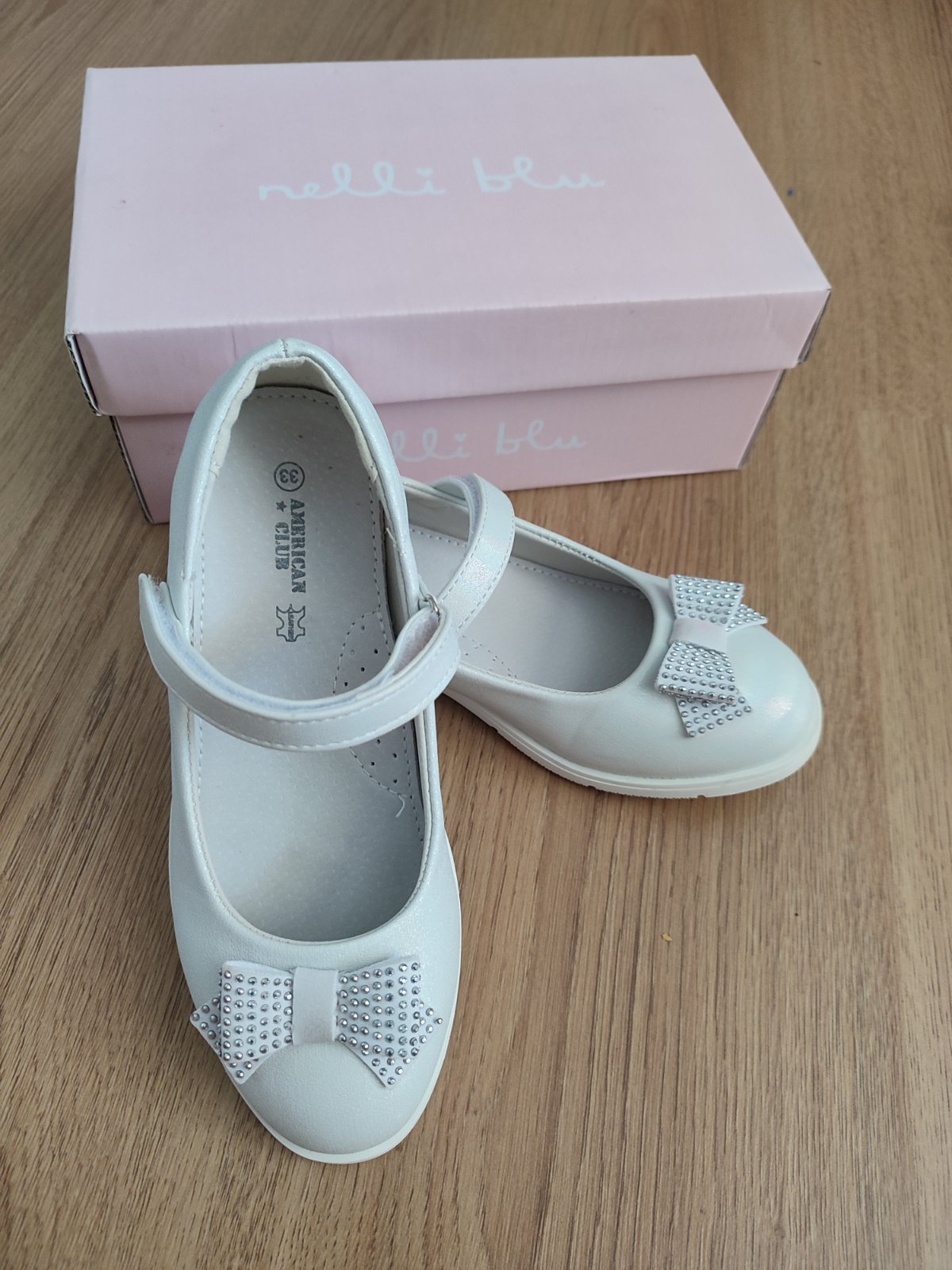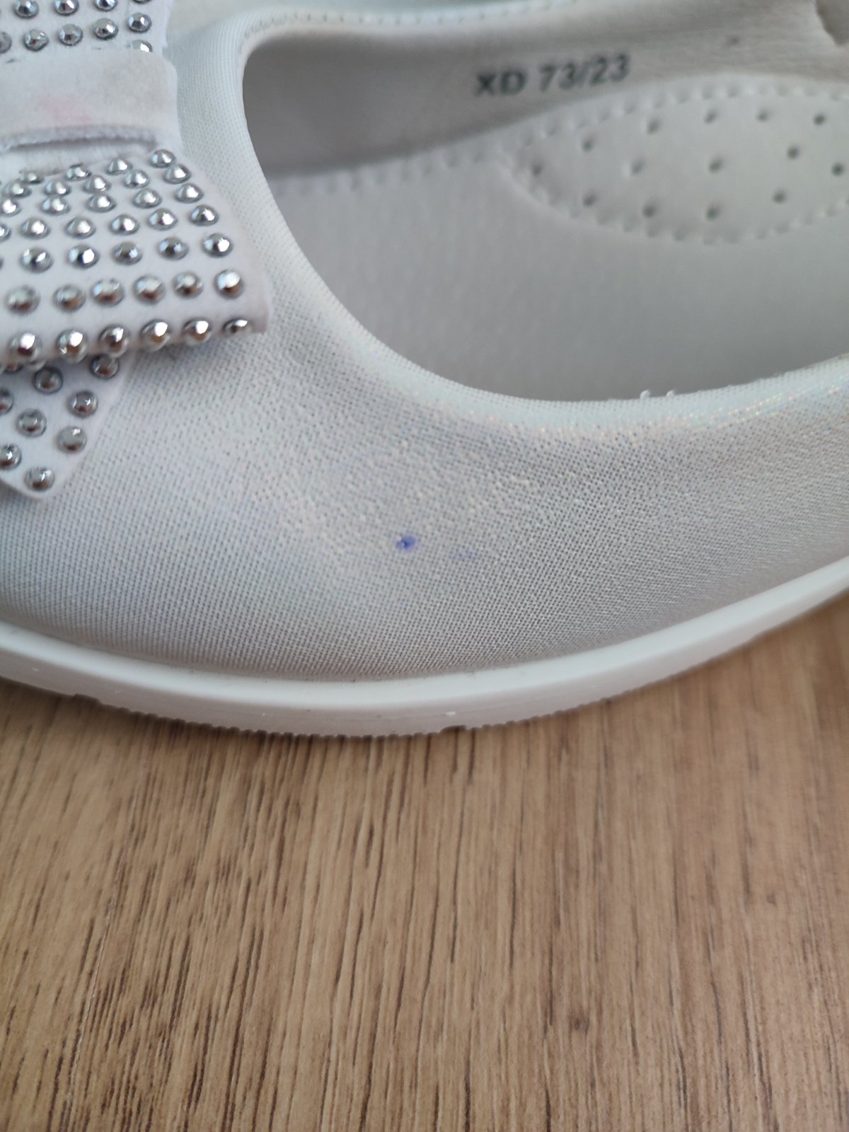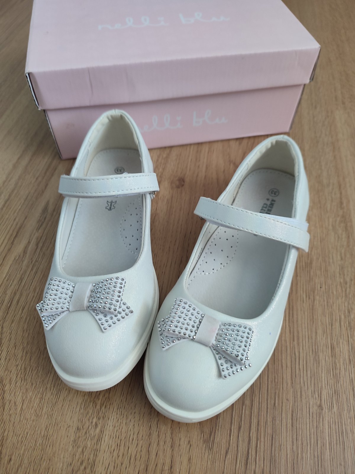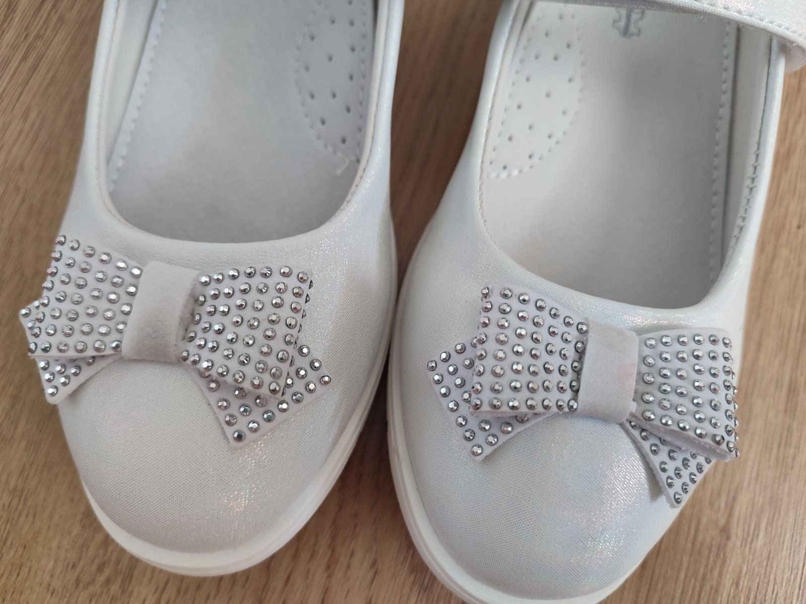 Predám biele perleťove topánky po dcére, 1x obuté na 1.sv.prijimanie. Malá škvrna na boku topánok ktorá nechce ísť dole ,viď foto. Malé škvrny aj na mašličkách vpredu. Pôvodná cena 25€, predám za 10€