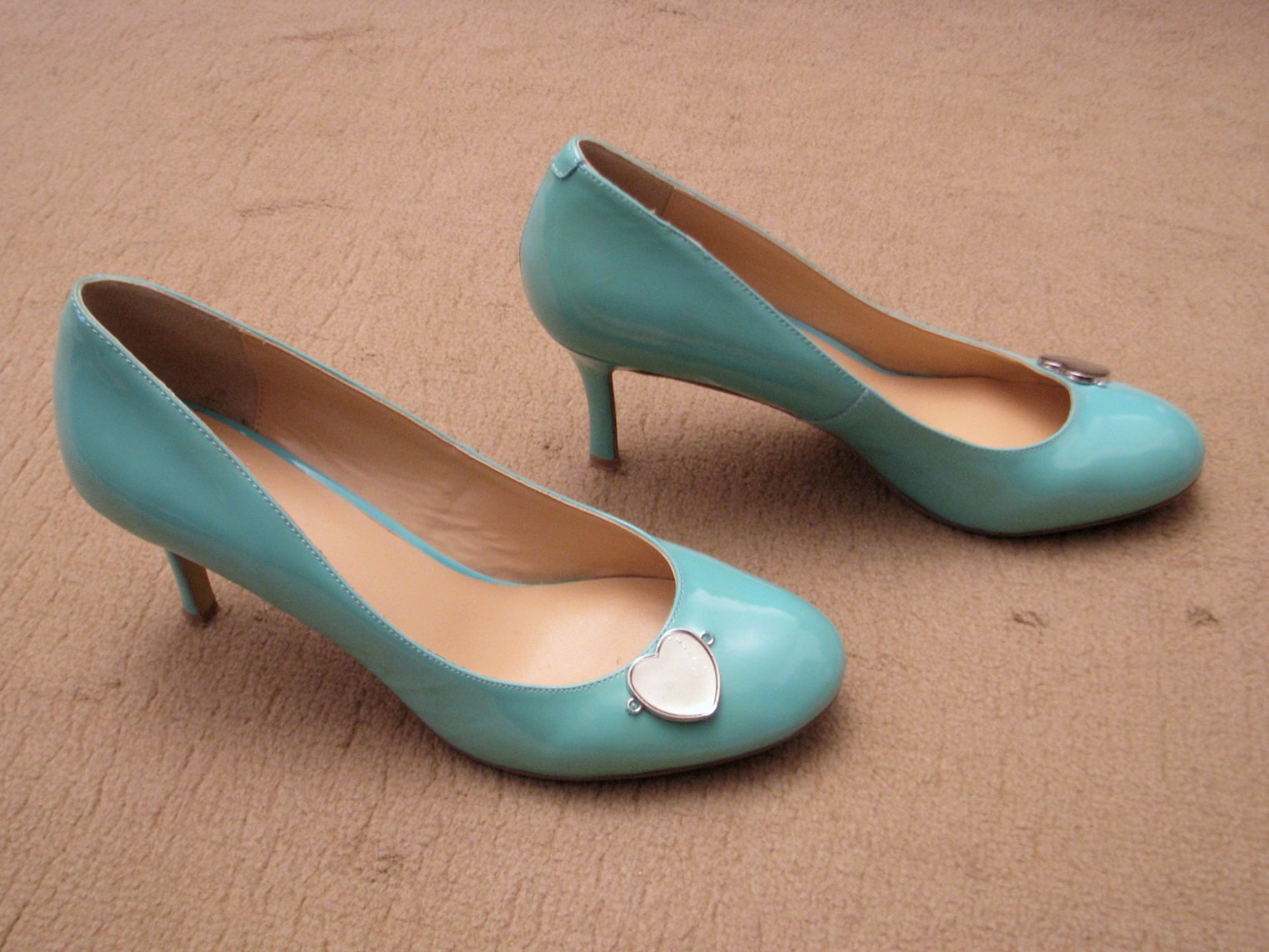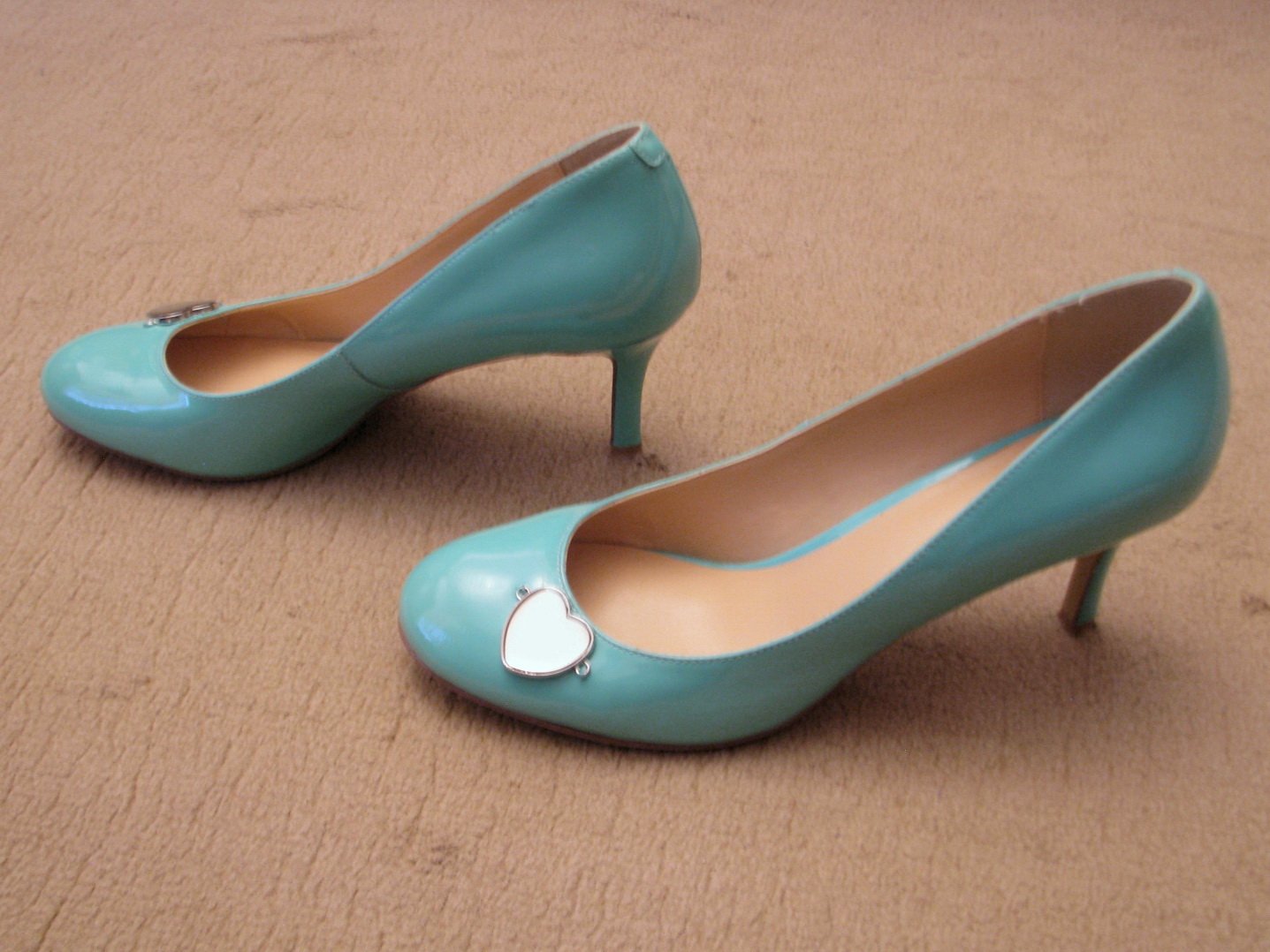 Krásne lakované lodičky z pravej kože mentolovej farby značky Baťa. Vpredu som im našila ozdoby - kovové srdiečka, vyliate krištáľovou živicou, nakoľko na jednej topánke sa mi na tom mieste pri skladovaní otlačil farebný fliačik, ktorý som tým srdiečkom celý zakryla a teda ho už nevidno. Inak sú výborne zachovalé, bez ďalších poškodení. Veľkosť 41, skôr väčšia, aj na 42, v prípade záujmu premeriam. Ku topánkam mám v ponuke aj ladiacu mentolovú lakovanú kabelku, ktorá má tiež kovové srdiečko (sú rovnakej farby, len fotené pri inom osvetlení).