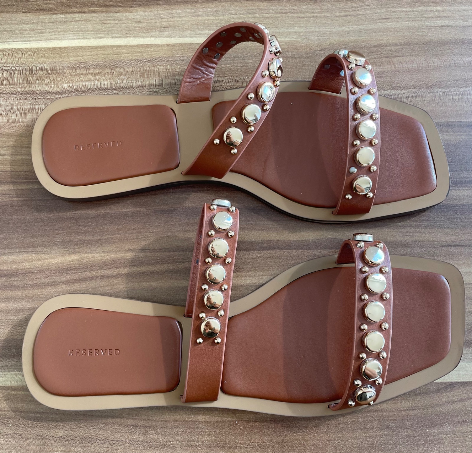 Hnedo zlate kozene slapky Reserved