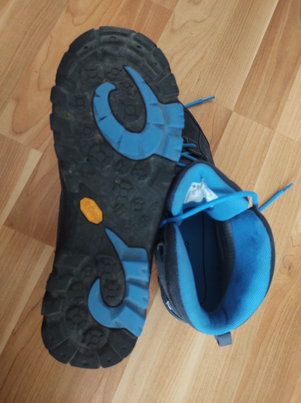 Obuv je z kože a má podrážku Vibram, ktorá poskytuje vynikajúcu priľnavosť. Mesiac nosené. Môžem poslať cez Packetu 3,60€. Vnútorná dĺžka je 25,5 cm.